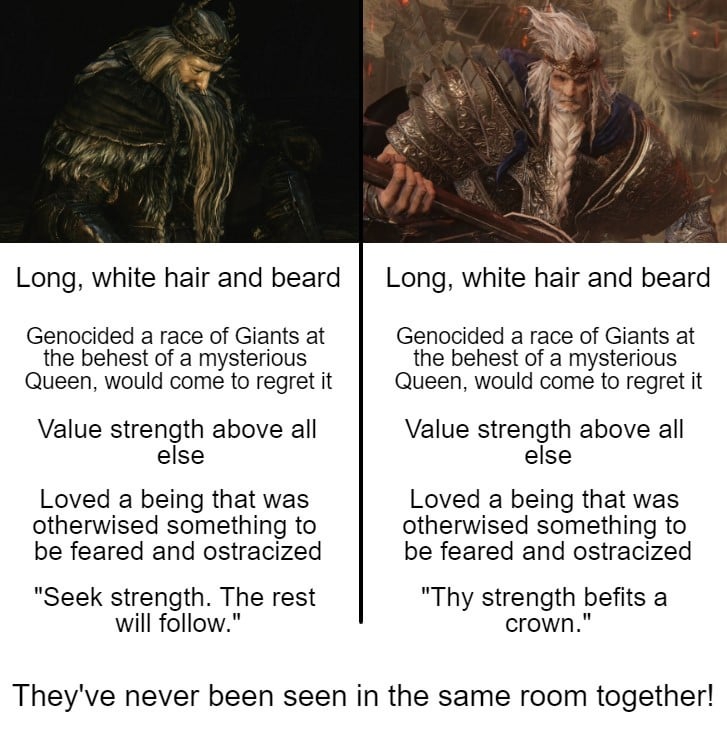 Забавная штука. Мне двуха с самого начала показалась какой-то не такой, было в ней что-то неправильное, инородное, не такое как раньше. До двухи я прошёл и однуху и демонов на плойке, а в двуху закатился уже на пк в 60 кадров. Моё ебало когда стартовый меч лопнул за ~10 ударов лучше не имаджинировать. Боссы показались мне хуйнёй уже тогда, что гигант, что преследователь, что четвёрка великих были просто кринжем и губками для урона. Кстати, я был уверен что если рубить гиганта по ногам, то он упадёт. Моё ебало когда гигант так и подох не упав можете не имагать. Хорошо что в бладике падения гигантов вернули, и в трёхе тоже. По лору тоже словил кучу непоняток и первые часы игры вообще не мог допереть что из этих обрывков разных историй есть центральная тема игры. А когда нащупал линию Веника и Нарашки, то был сразу сбит с толку боссом-жабой, Алдией, который до этого в лоре не появлялся, драконом и воспоминаниями гигантов. В общем закрыл я игру без малейшего понимания что произошло в Дранглике. Двуха в целом мне так и запомнилась, каким-то сырым огрызком с недописанной историей. А потом, спустя годы, я застал великую драму лорных войн и прочих приключений протыков. И оказалось в итоге, что мне тогда, в далёком 2014, нихуя не показалось. С игрой всё действительно очень не так.