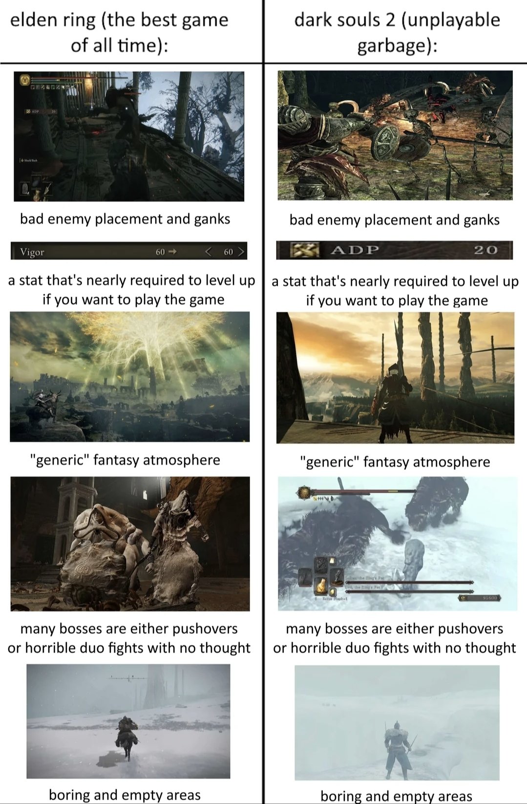 >>50372604 >беседы за Дарк Соулс 2 Отличные, мои любимые. Двушка выглядит как игра из 2007 и играется так же, её лоровая ценность на уровне кофейной кружки уборщика, но видеть подрывы фанатов "лучшей части" итт -бесценно. >У него У кого?