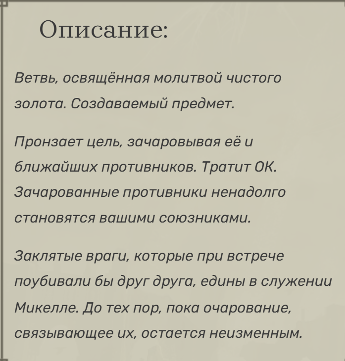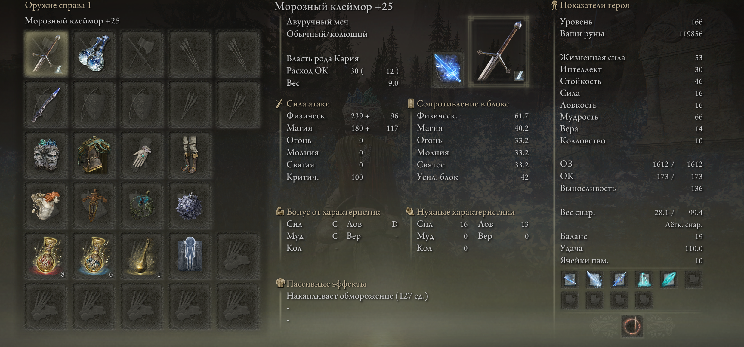 Впрочем, если хочешь быть увожаемым дрынобоярином без статус-эффектов - тоже вкидывай в аркану, ведь она бустит урон оккультной закалки на силовом оружие до небес (оккультный крушитель великанов - самое дамажащее оружие в игре, nuff said).