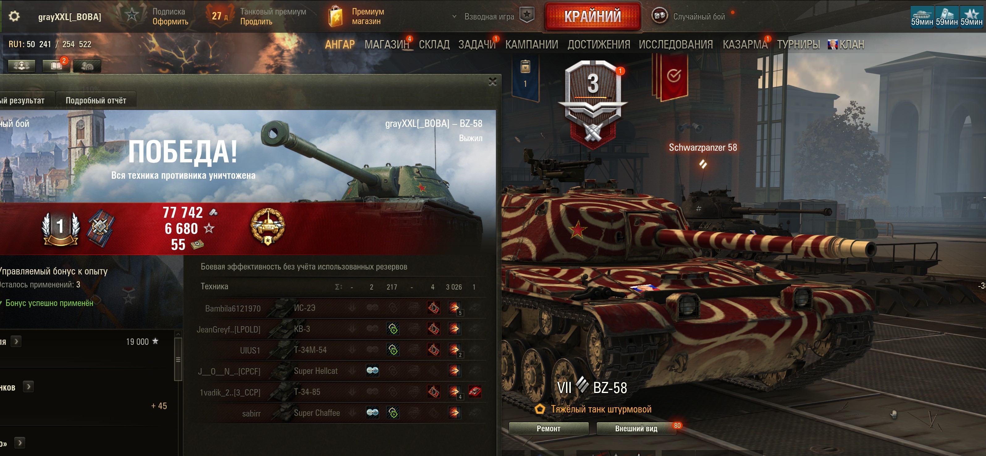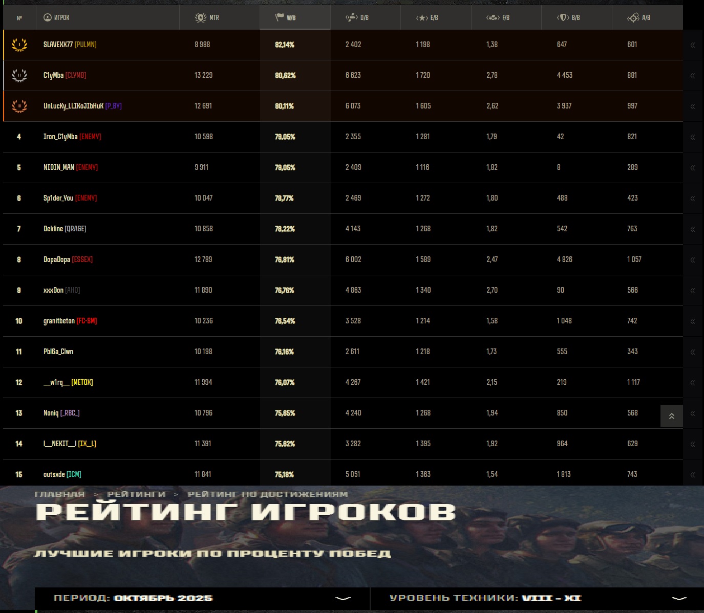 Позже, после боя, я заглянул к нему в профиль. Там столбиком громоздились отметки "Мастер" и процентовка побед от 60.