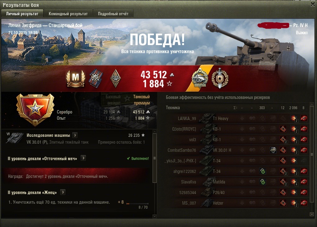 Я думал попыток 10 минимум понадобится, а тут с 3 затащил, да еще один челик на 9 лвл был. Медальку залутал, можно еще 4 танка выкачать если не лень будет