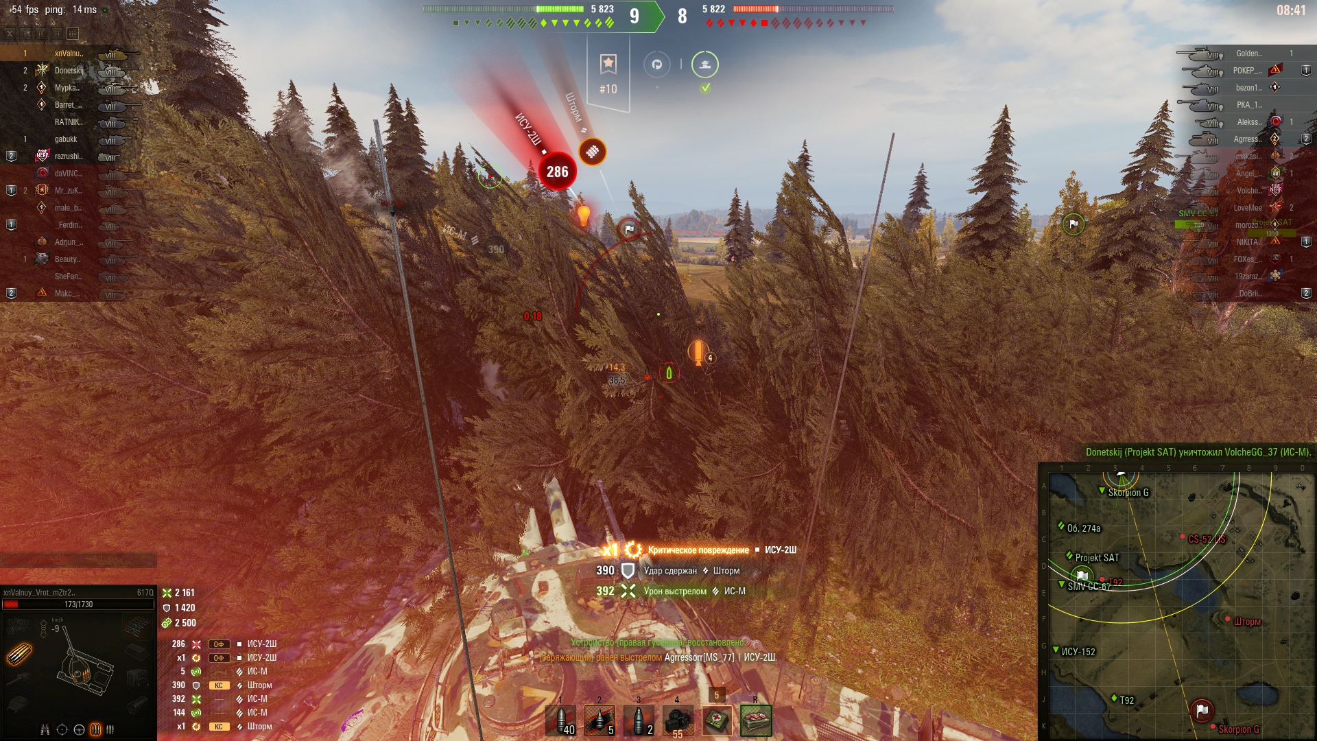 Ебать же у меня что-то подгорело. Стреляю тупо в центр жопы танкообразного, оно мало того, что летит хуй знает куда, так еще и критует гуслю через жопу. Да и вообще, что-то у меня последние пару дней просто пиздец, как хуево летит, от критов уже охуеваю просто, видимо нужно серверный прицел поставить.