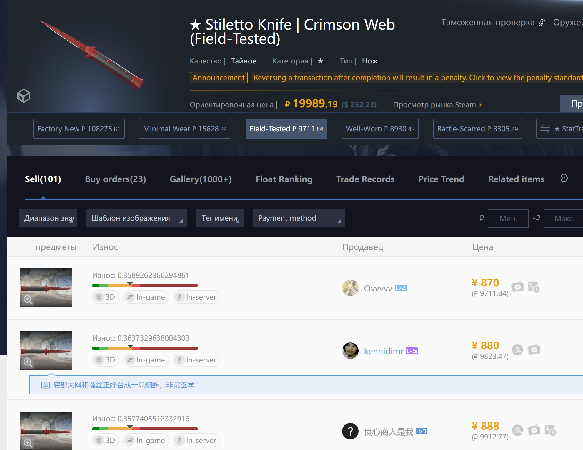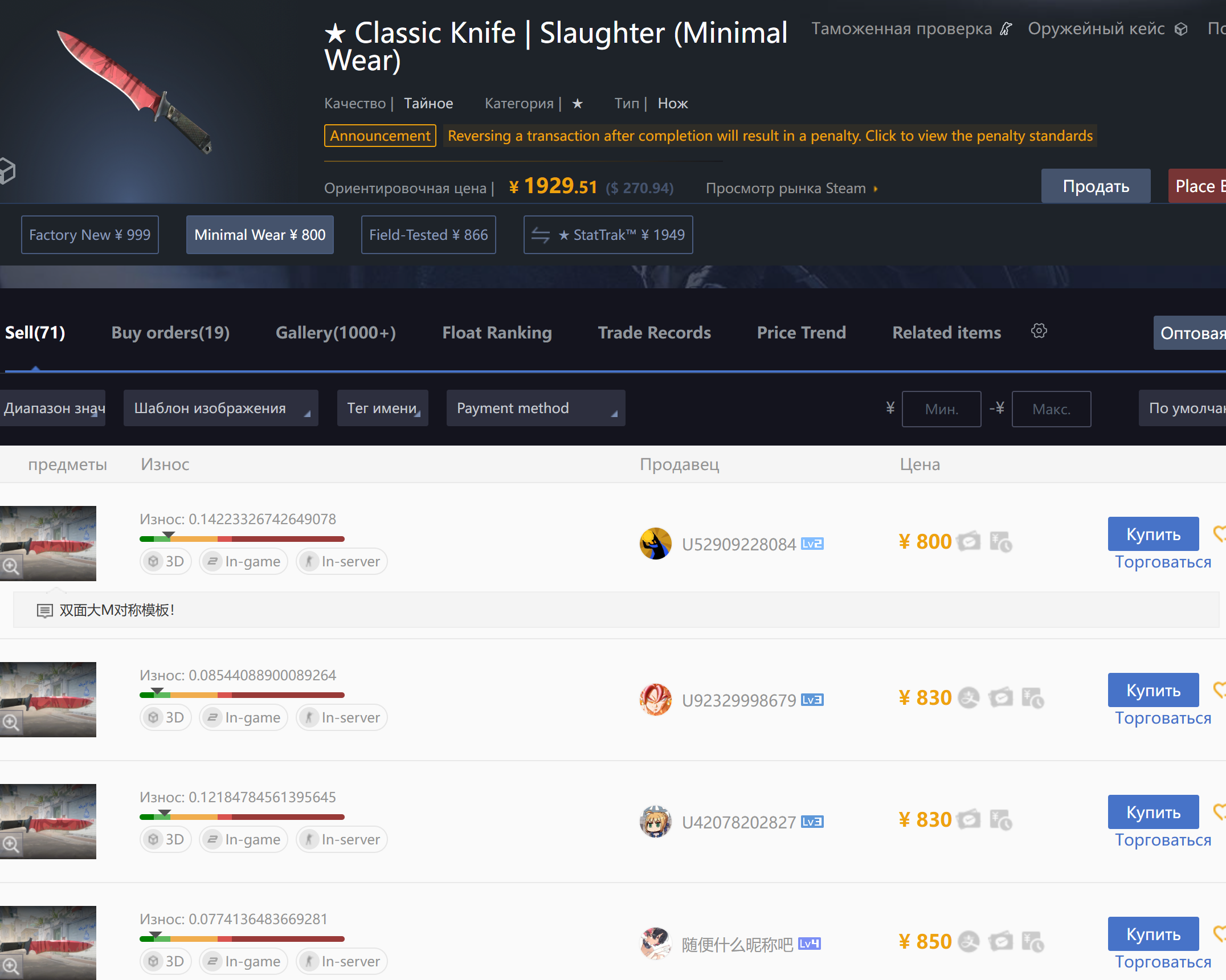 Причем у меня вообще складывается впечатление, что реверсошизы специально продают айтем и реверсят его, чтобы получить бан, который будет спасать их от соблазна как хомяк слить скин пока рыночек качает туда сюда. Поэтому таким образом они хотят заблочить его, чтобы продолжать холдить и не было соблазна слить.