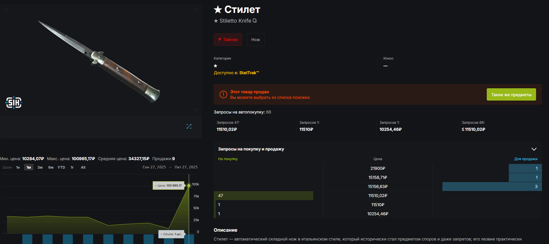 Не, ну, в стиме 40+к этот стилет стоит, я потратил 23 тыщи где-то, 22 у меня было и давно покупал разъяренную толпу, уже не помню за сколько, но точно не больше чем за тыщу. Как бы в деньгах больше выиграл. Получается что с двух тыщ я сделал где-то 46, ещё у меня один император есть который я ранее брал, его я не стал использовать в контракте