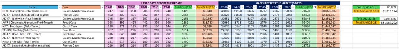23-24 октября: итс факинг овер эксит олл маркетс 25-27 октября: слив был манипуляцией, на баффе все лоты - фейк, новых ножов капля в море и китайский господин все выкупит в момент 30 октября - 14 ноября: итс факинг овер уходим в валорант (смотрю в будущее)