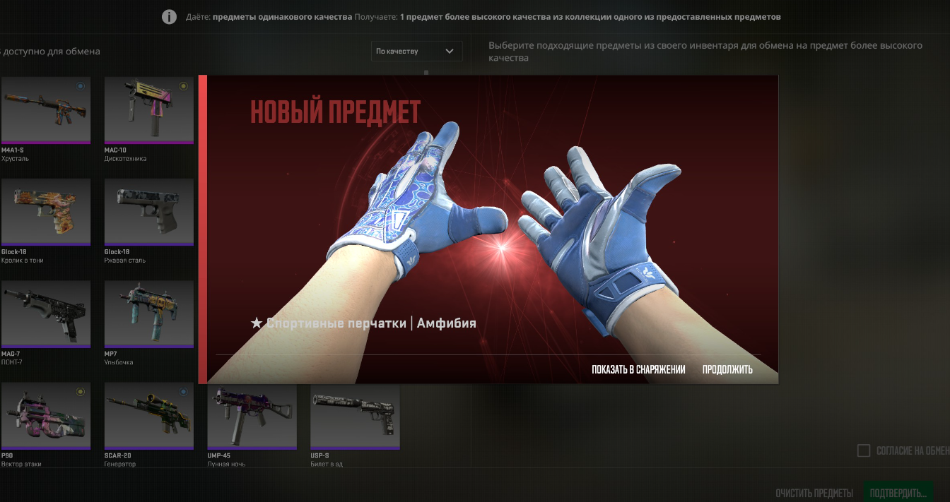 Спасибо анону, который написал про трейд ап калькулятор, без него не решился бы. За два часа нарыбачил в стим маркете 5 mw красных авп с нужным флатом (потратил 23к в стиме), получил mw нокты. 62% шанс окупа трейд апа это дичь конечно.