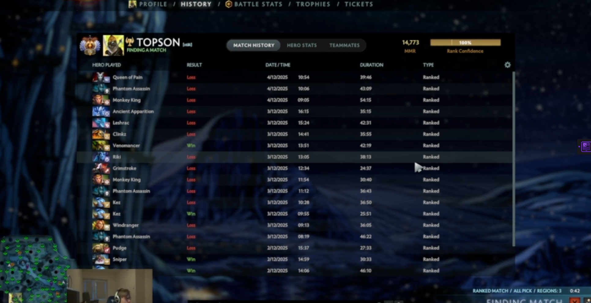 >>50544714 Чето да зивисит от тебя хотя может казаться по другому. Есть игры где ты 100 процентов отсосешь есть где можешь хоть срать уйти и тима тебе игру выиграет ну а есть где на тоненького вот в таких надо побеждать пытаться. Я апался с 1.5к до 4к у жирного система сделана очень уебански в плане апа ммр волнами. Сначала ты условно залетаешь на ебейший винстрик и апаешь на нем +800 ммр потом походу система видит что чет дохуя ты выигрываешь значит надо тебя к даунам покидать и идет лузстрик на -400 условно потом качели луз вин луз вин пока опять вин стрик не поймаешь. Вот главное на этих вин стриках как можно больше поднимать рейтинга и так апаться