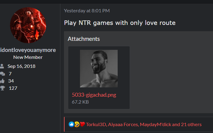 Я кстати ради эксперимента пошёл браузерить телег-каналы и ёпт вашу ж мать. Минимум 100к в среднем человек по крайней мере осознают словосочетание "хентай-игры". И постятся, пускай и самый 0.00000012 нейрошлак в основном, там посты исправно. Это я к чему. Возможно ли, что постинг в треде упал и из-за того, что новая кровь предпочитает лениво пролистнуть ленту, а не писать многострочие для дедов на веб 1.0 интерфейсе, а старички сами уже окукливаются по уютным комфочкам, где можно на стабильные три лайка нести любую хуйню?