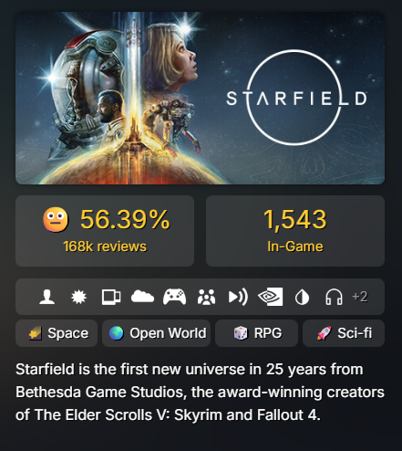 Просто смотришь в Стиме на онлайн Старкалыча и сразу всё становится понятно: никому ненужный старкалыч, даже мододелам нахуй не усрался выкидышь карлика-дилетанта Тодда. Амбиции, грезы карлика об "эпичной космической rpg", в итоге - пук! бздюююх!!.