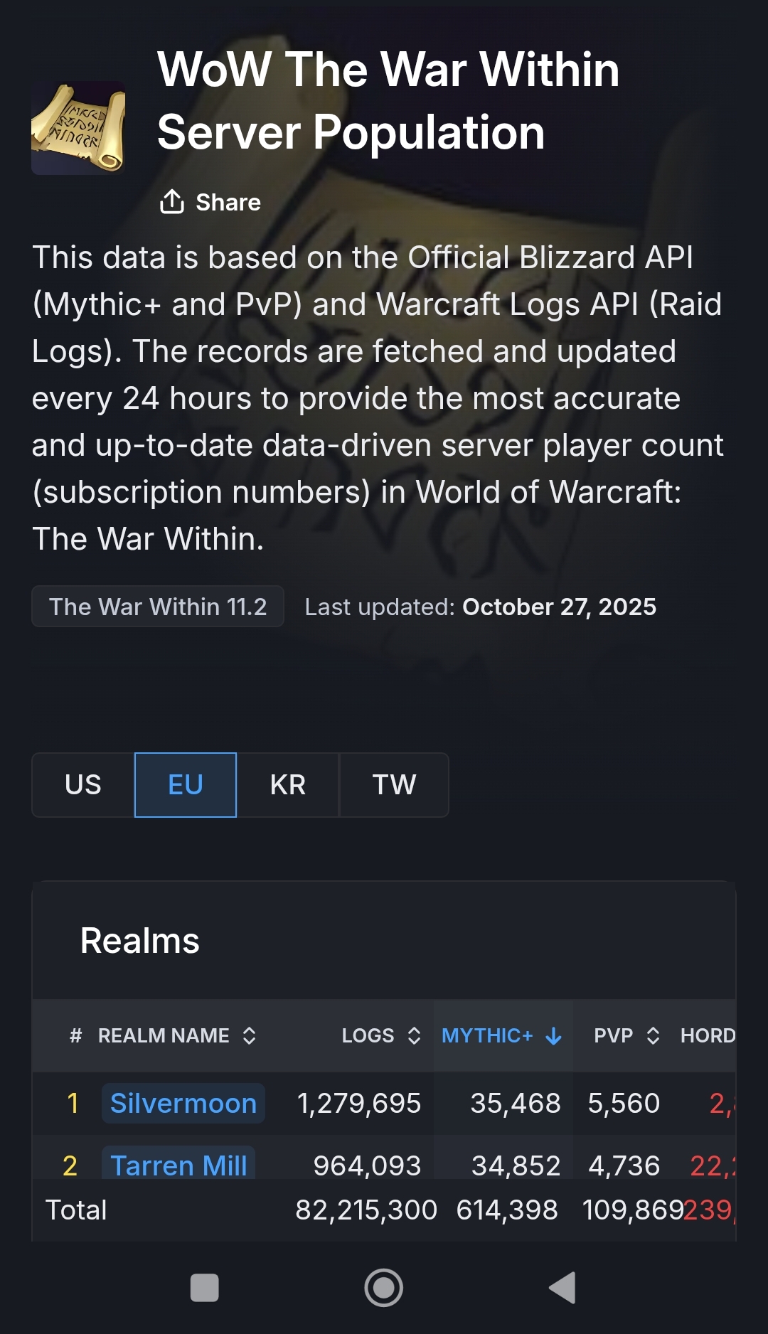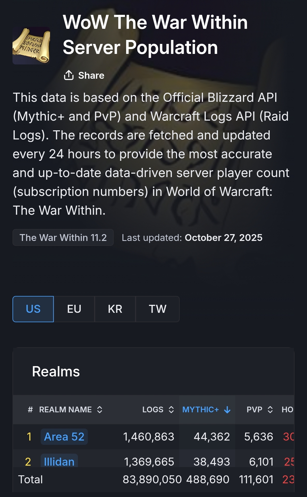 >почему анниверсари сранила еле дышит? В неё нормально играют, просто там уже конец почти и в игре особо нечего делать. На актуале тоже всплески активности на стартах аддонов и патчей, а дальше спад.