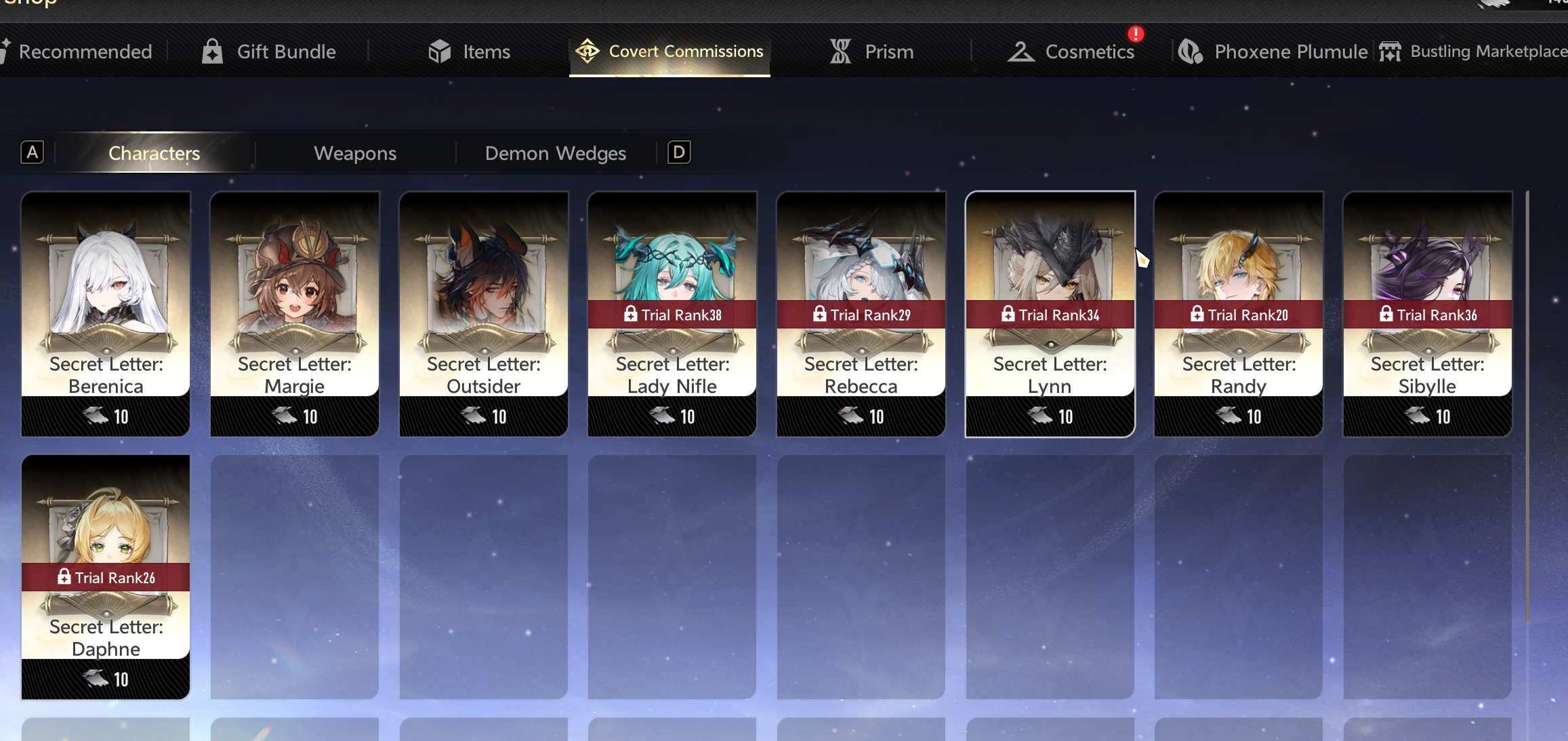 5 ранов в неделю - это 15-25 билетов, в среднем на персонажа тратится 20, вполне норм. Да и чую я, что таких персов-оружие в эндгейме будет как раз таки проще фармить, что покупаемых в магазе, потому что приток этих серых писем сильно просядет.
