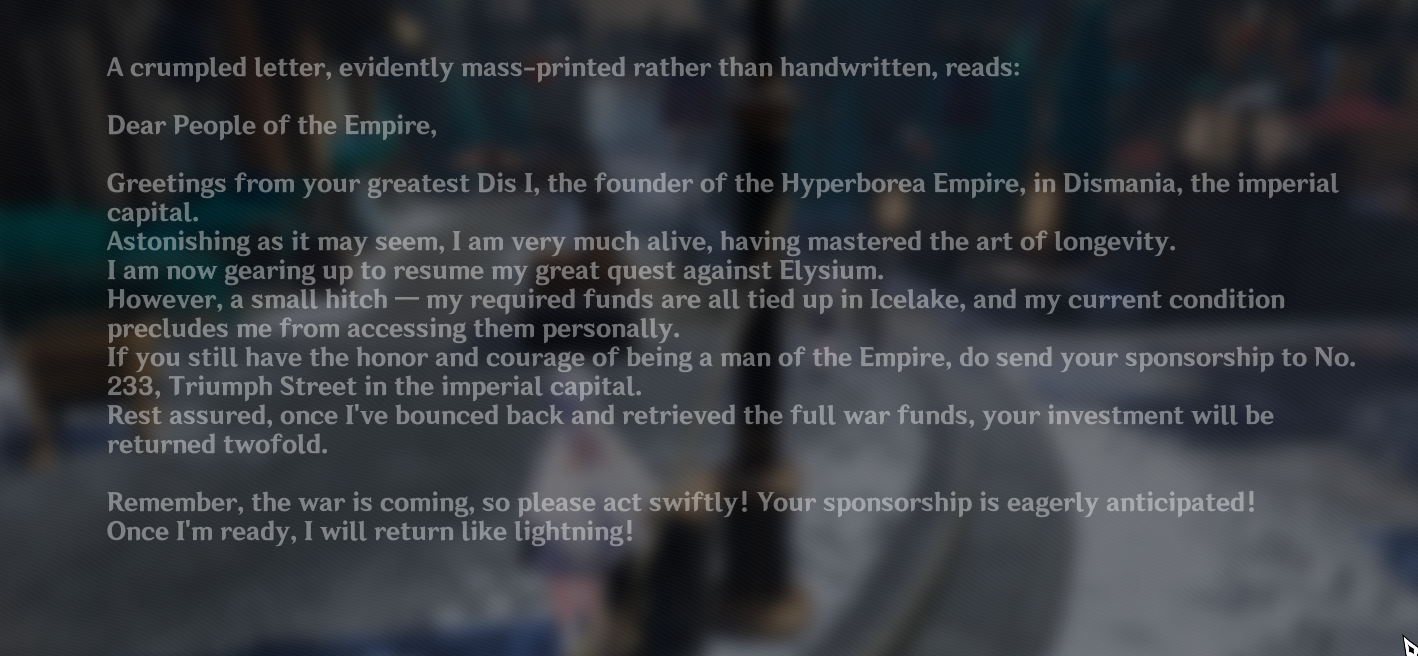 >>50376246 Тоже нашёл, пикрил место. >>50376286 Письма (валюта) даются почти вообще за всё, но по чуть-чуть. В целом можно бесконечно фармить, но медленно.