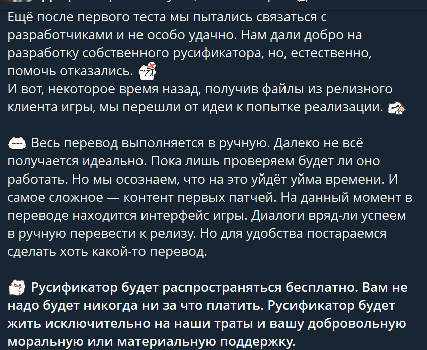 Сложно рационально объяснить тупорогость разрабов, ну возьми ты текст игры, да скорми какому-нибудь диплу, контрл цэ - контрл вэ, и у тебя моментом увеличатся охват, оценки, лояльность и продажи. Ну поворчит пара комнатных эстетов на нейронку, но они бы и так ворчали, хоть ты профессора лингвистики переводить найми. Понимаю, если дело принципа, но у этих из европейских вообще один англюсик, просто тупые.