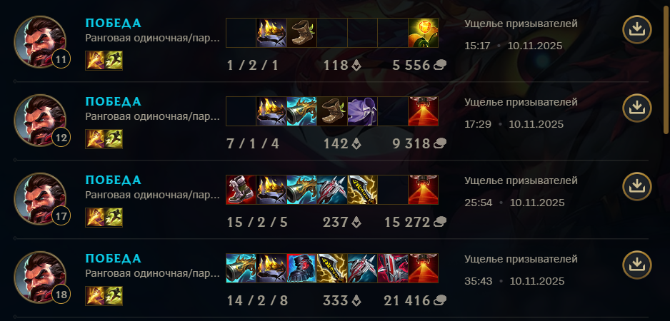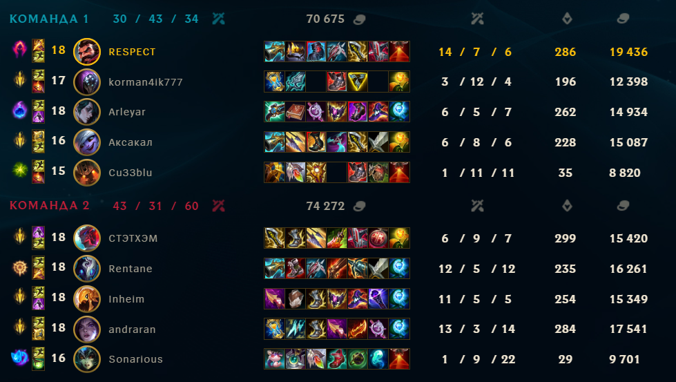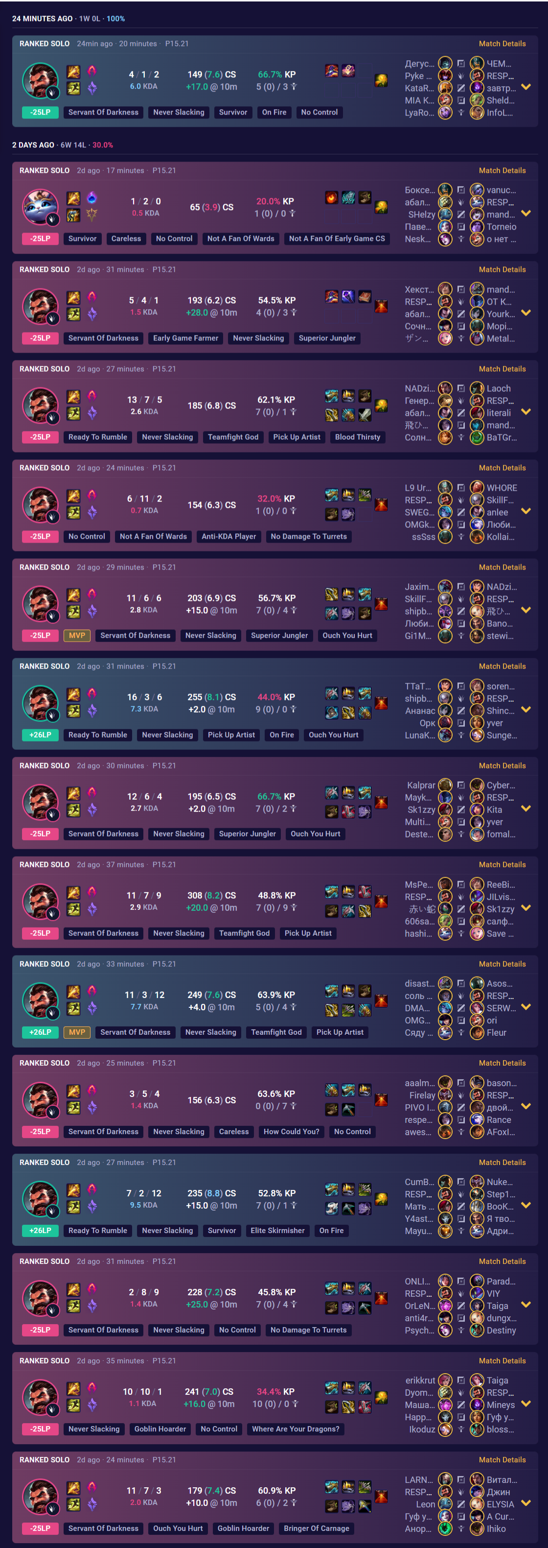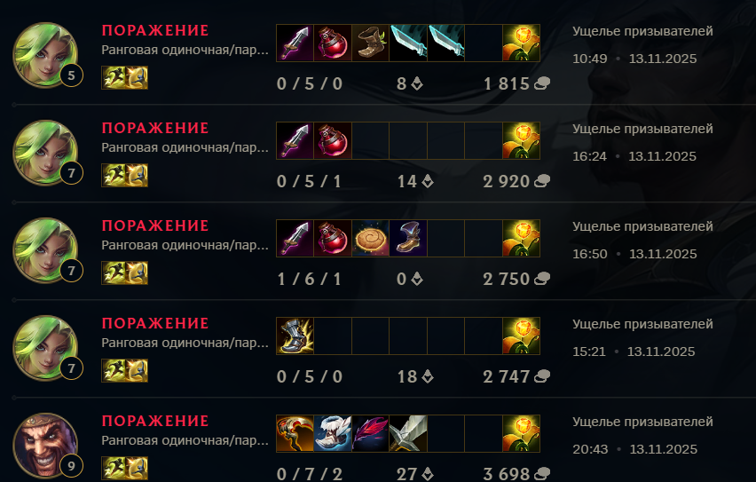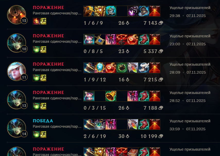 вот и 9 катуля) одна лучше другой просто, главное что прям КАЖДАЯ игра автолуз либо каким то чудом камбек параши, могли бы хоть для справедливости побольше победок дать, я еще до этого проебал 8 игр, мне сритосня просто ебанула 6 автовинов, но почему то теперь я расплачиваюсь за это уже 9 игру подряд и те уебища, которых я топтал играют уже со мной... У меня же память свежая еще, вот вчера побеждал, я помню как там мувались тиммейты, какой тимплей был, я не прошу разьебывать лайны, но просто ну там подойти нажать кнопки нормально, реагировать на пинги... но тут совсем больные твари