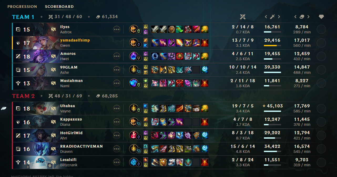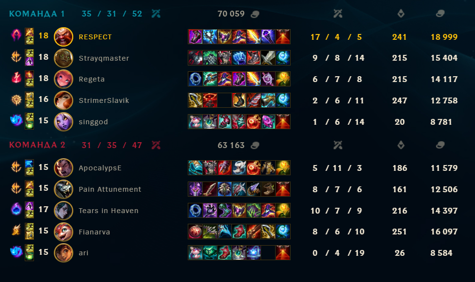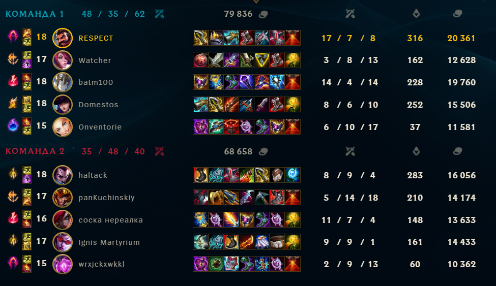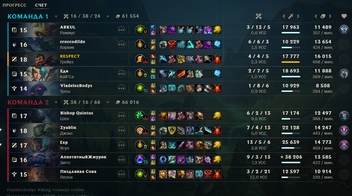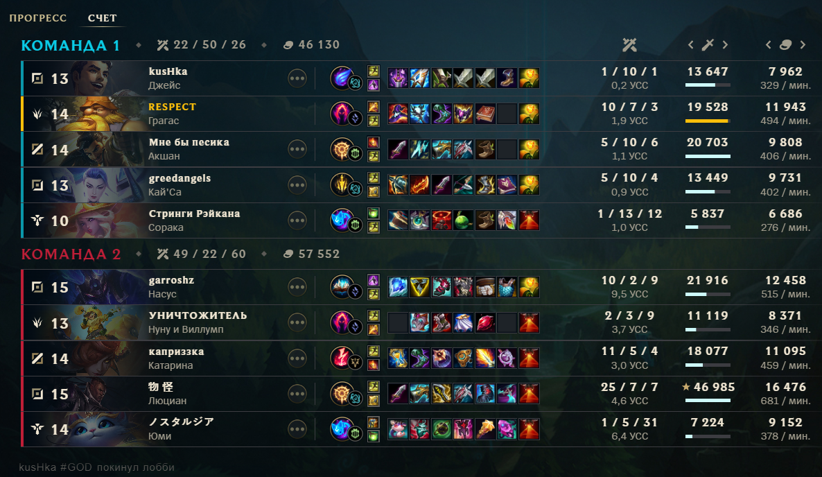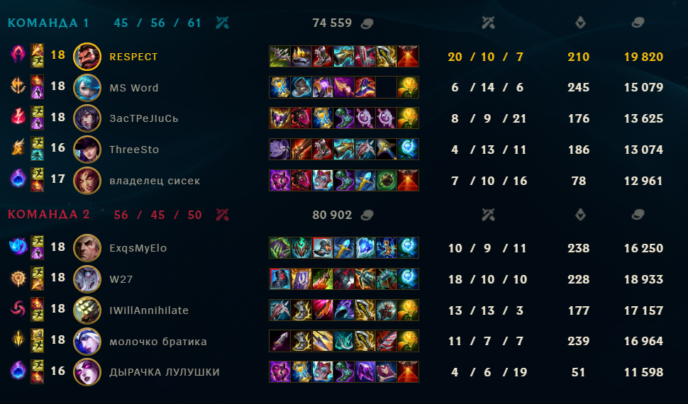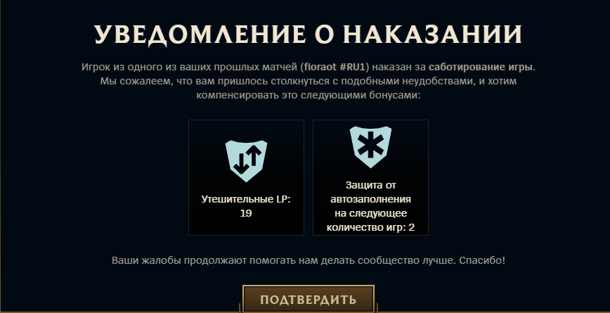Обиженка со сдохшей мышью кинула репорт за "rudeness", когда вполне резонно и корректно было сделано предложение последовать за умершей мышью. После игры прилетел ворнинг с логом чата. А то, что чмо своей сдохшей мышью руинило игру сритосов не волновало. Выиграли только благодаря тому, что ясуо давал грамотные коллы и я тупо с ним шареоёбился и мы вдвоем обьекты забирали и ганкали из кустов по 1-2 врагов, пока дебил со свой сдохшей мамашей мышью откисал в таверне по кд, а оставшиеся двое в афк долбили крипочков на линии. Хорошо, что в противовес таким уебанам есть, хоть и в меньшинстве, добряки типа того ясуо.