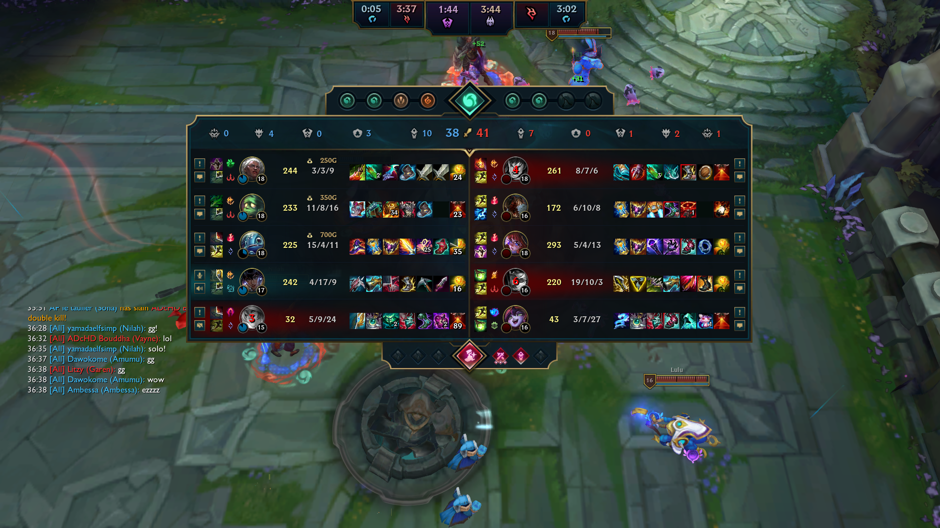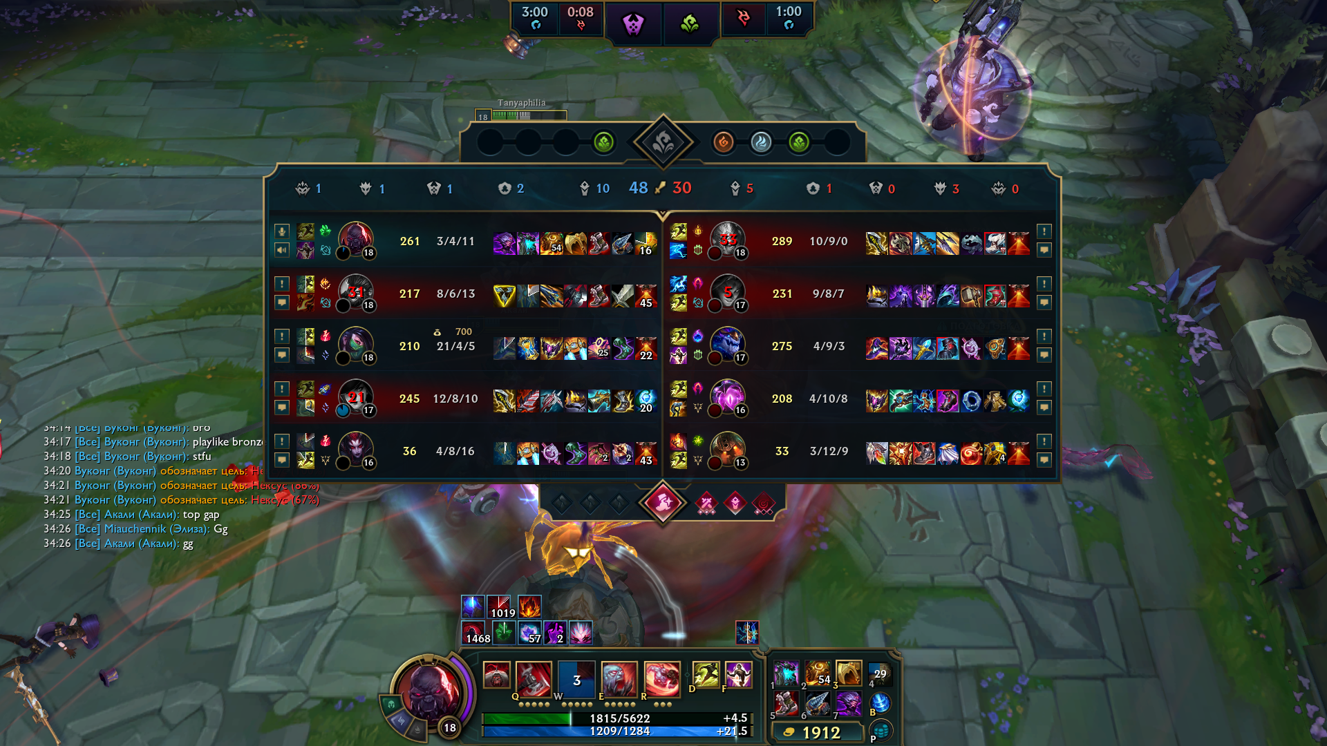 Играешь на боте - делаешь трипл киллы, сносишь башни - в игре абсолютно и полностью отсутствует лес и мид. Их нет, они своими действиями играют на стороне врага. Атахан забрали только потому что троих около него забрали. Единственный полезный смайт от эвелины за всю игру. Все драконы, герольды, бароны, всё мимо, на большинство даже подвижек не было. Дракон живой снизу, вижен есть - хуета фармит лес сверху. Барон сверху, вижен есть, враги в другом месте рассредоточены, хуета фармит кемпы на боте. Спавнится элдер через 10 секунд - хуета просто бежит, откисает и строчит в чат "wp, get elder and end".