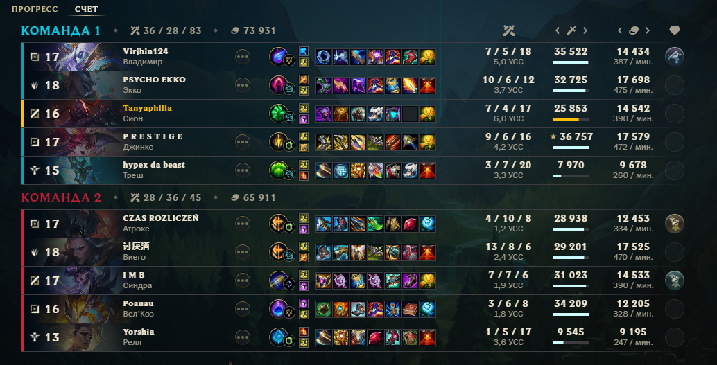 Все, закончились автовины, я это сразу по филу в мид понял, а сайды и пасивка на псине только убедили меня в этом. В ласт файте собачка тупо не зашла, бегала хуй знает где за кем, без понятия, никого не убила, там джакс и шен нахуй, просто неуязвимы для меня, влетели и начали нас хуярить, я просто не дождался когда можно пострелять, залетела бы собачка с фиром там, потанчила чуть чуть, нуууу) пиздец. Еще напикали главное чисто vs меня параши, два миса, стенка и зиггс хуярит через полкарты.