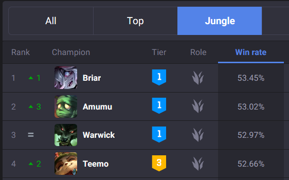 аа, так вот оно че)) ЛЕСНИК БУКВАЛЬНО ПОПУЛЯРНЕЕ МИДА. теперь все встало на свои места. господи занерфите эту роль просто в помойку чтобы у нее было 10 пикрейта