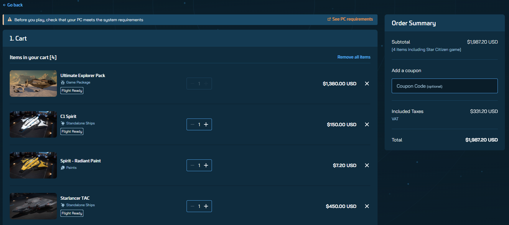 >Как начать играть? Для начала игры требуется приобрести игровой набор на официальном сайте https://robertsspaceindustries.com/pledge Там на выбор предлагаются игровые наборы разной стоимости (от $45). В состав каждого набора входит сама игра Star Citizen (ММО-космосим). В набор SC входят: корабль (на котором вы будете начинать игру), ангар для вашего корабля, страховка к этому кораблю, немного внутриигровой валюты и прочие приятные вещи. Больше ничего покупать не обязательно, можно начинать играть. Есть ещё одиночная компания "Squadron42" которая пока не продается, по старой цене пакет со Сквадроном вряд ли найдете даже на сером рынке, но попытаться стоит. По слухам, старт продаж по новой цене должны открыть в конце 25го года(по слухам) В связи с известными событиями с 22 года купить игру на территории РФ стало затруднительно, благо в ру сообществе есть годами проверенные продавцы, которые купят вам пакет либо через заход на ваш аккаунт, либо отправят стартовый пакет гифтом. >Когда релиз? Через 2 недели. Конкретная дата коммерческого релиза SC 1.0(который ни в коем случае не означает конец работы над игрой) пока не объявлена, но по примерным прикидкам Криса Робертса - где-то в 2027-2028-2029 году. Но если есть желание посмотреть как дела обстоят сейчас - добро пожаловать в альфа тест. Релиз первого эпизода синглплеерной компании Squadron 42, согласно заявлениям Криса на CitizenCon 2954, назначен на 26й год. Скорее всего, до ситкона 26го мы его не увидим, так что терпите. >Я видел там у вас корабли за $3000 продают, обязательно ли их покупать чтобы поиграть нормально? Да продают, нет, не обязательно. Для игры более чем достаточно самого дешёвого игрового набора. Продажа кораблей за деньги это один из способов финансирования игры, покупают эти дорогие корабли только энтузиасты с деньгами, которые хотят поддержать проект не только словами но деньгами, либо те, кому просто хочется и те, кто может себе позволить иметь этот красивый кораблик сразу при старте игры и есть лишние деньги для этого. Все корабли, предметы и оборудование, доступное для покупки за реальные деньги сейчас, можно будет добыть\купить\украсть\получить за миссии или добыть иным способом уже в самой игре. Начиная с версии 3.5 в игре уже можно покупать корабли за внутриигровую валюту (UEC), а также получать по ходу некоторых миссий. >как там с производительностью? моя некропека для учобы потянет в 4к 60фпс? От патча к патчу производительность улучшается, но в любом случае крайне желательно иметь ssd, >32gb ram, 8-ми и больше ядерный проц, ну и чем лучше и новее будет видюха, тем больше фпс получите в итоге. Посмотреть производительность игры на разных конфигах можно здесь: https://robertsspaceindustries.com/telemetry >а что там разработчики будут добавлять в следующих патчах? когда сделают/добавят "корабль/фичу/персонажа/планету/небо/аллаха"? Дорожная карта разработки доступна тут: https://robertsspaceindustries.com/roadmap/board/1-Star-Citizen