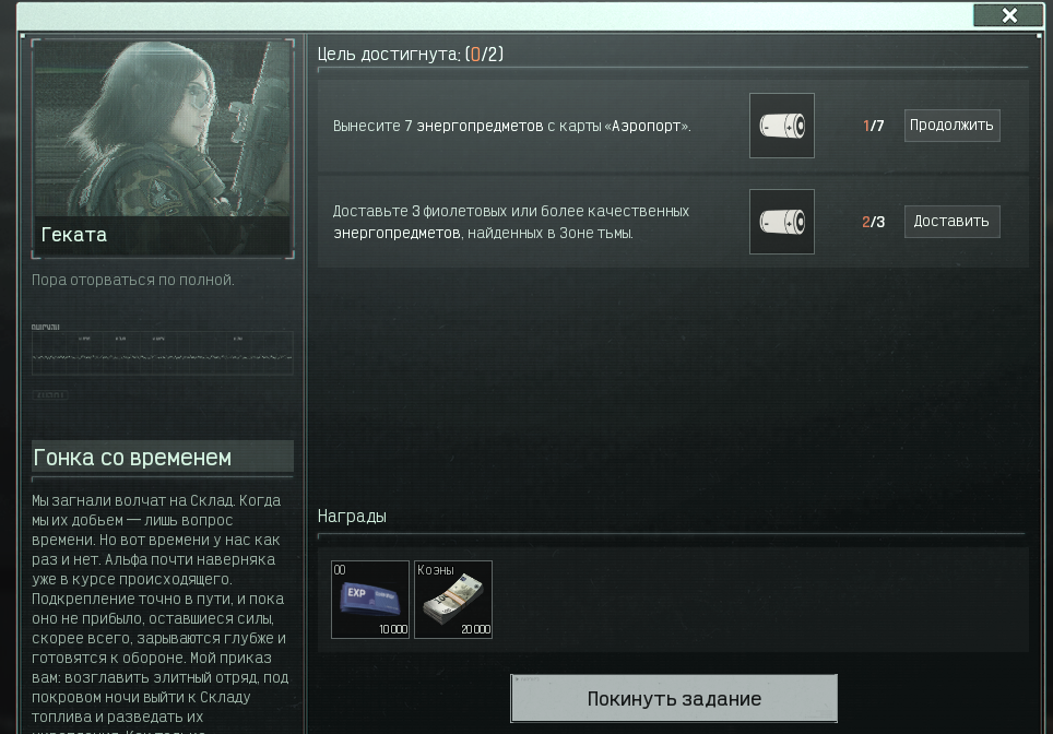 Основная цель игрока — зайти на карту, собрать ценный лут (оружие, броню, медикаменты) и выбраться живым. Каждый рейд — это баланс между риском и наградой: можно потерять всё снаряжение или разбогатеть. В игре существуют задания за выполнение которых можно получить ценные (и не очень) награды. Игроки выполняют их в ходе самого рейда.