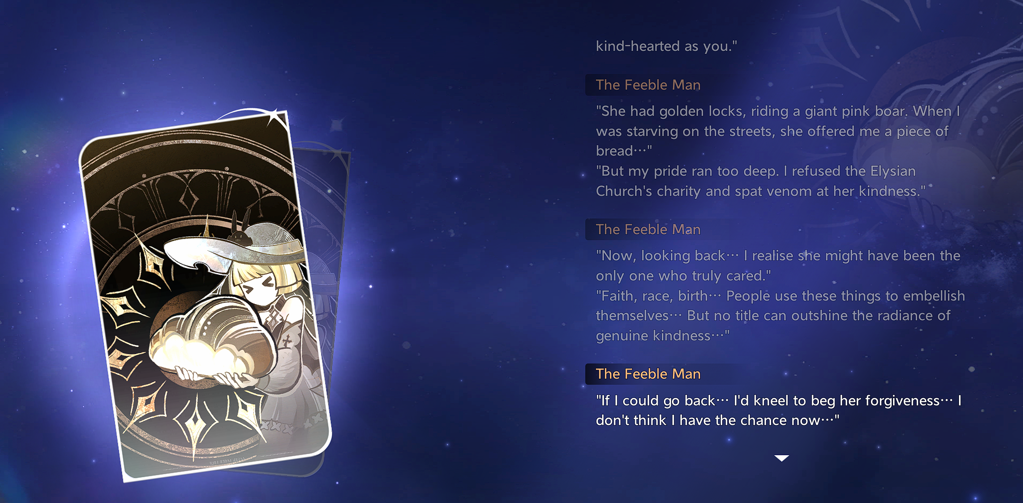 >>50394683 Сюжетка это единственное, что тут серьёзно проработали наверное. Удивительно, учитывая что 1.0 сюжет в каждой гаче это обычно переписанный и переваренный 10 раз кал, и всегда как говорят про какой-нибудь неплохой сюжет где-то обязательно добавляют "ну потерпи 10 глав дальше будет лучше" как с фго каким-нибудь