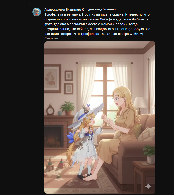 >>50399854 Фиби, похожий на Трюфель персонаж из гачи Wuthering waves. Внешку кстати не брали, они обе просто археипные аниме-миссионерки. "Чупс" это наследие мемного квеста в игре где часть персонажей превратилась в кубы, повторяющие одни фразы. Кубик Фиби был особо забавен и повторял "фиби-чупи" с разными интонациями.