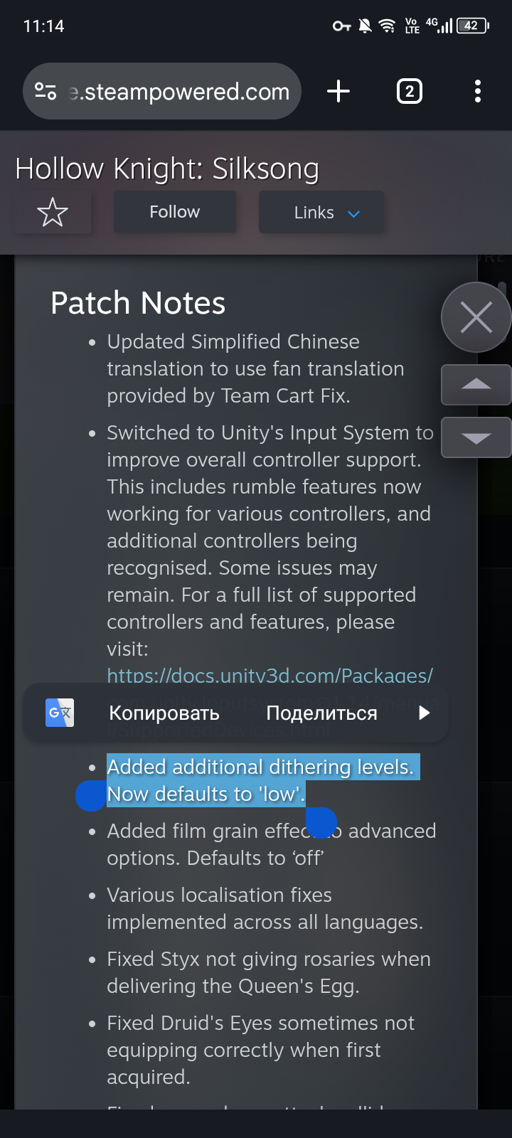 В целом по игре - лучшая, после ваний, метроидвания и самая лучшая из всех новых. Честно говоря не знаю как играть в других игры этого жанра после силксонга. В ней настолько всё идеально, что её интересно и приятно проходить, даже зная большинство секретов. В целом жанр можно хоронить - ничего в ближайшие лет 10-15 такого же уровня больше не выйдет, как в своё время герои 3-5 похоронили свой жанр. Буквально легенда родилась на наших глазах.