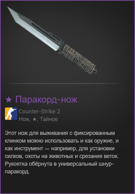 дорого? есть разные скины, после обвала рынка, нож теперь может позволить любой пиздюк , тот же кукри или паракорд тыщи за 3-5