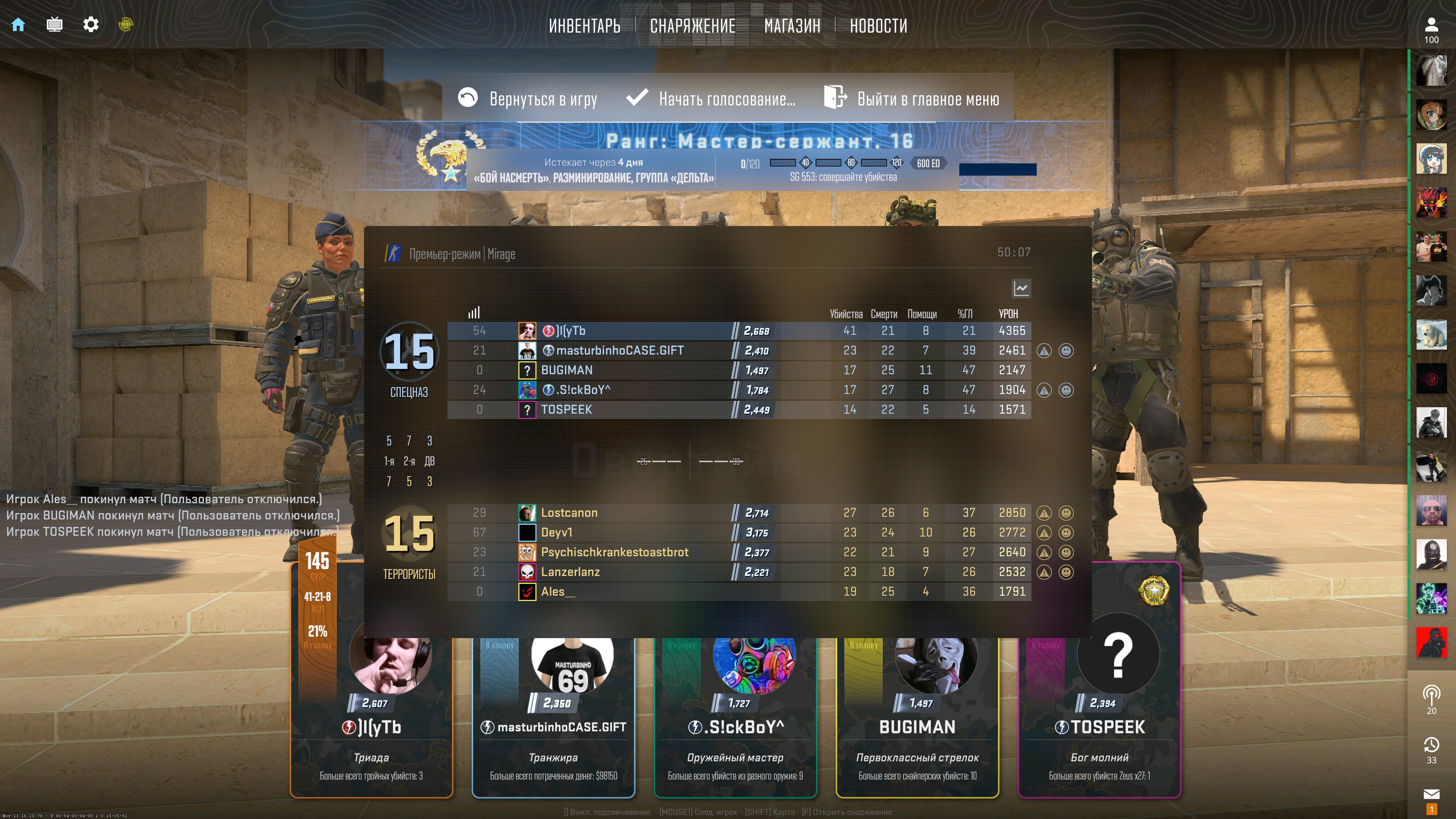 теперь типы разнылись мол аряяя оставьте мираж, я трейн не умею аряя луз мы их ебали в одну калитку, потом у нас тип (хиккан) после смены сторон от тим дамага вылетел лол и мы остались четверо, начали сливать раунды но потом собрались и выиграли даже с мегабалластом на бандите