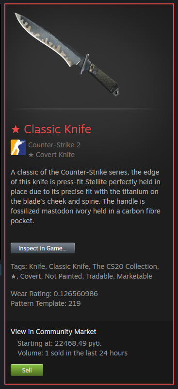 Вопрос знающим. У меня есть скин пистолета, который стоит около 50 рублей. Еще у него степень износа с тремя нулями после запятой. За сколько реально можно продать такой скин?