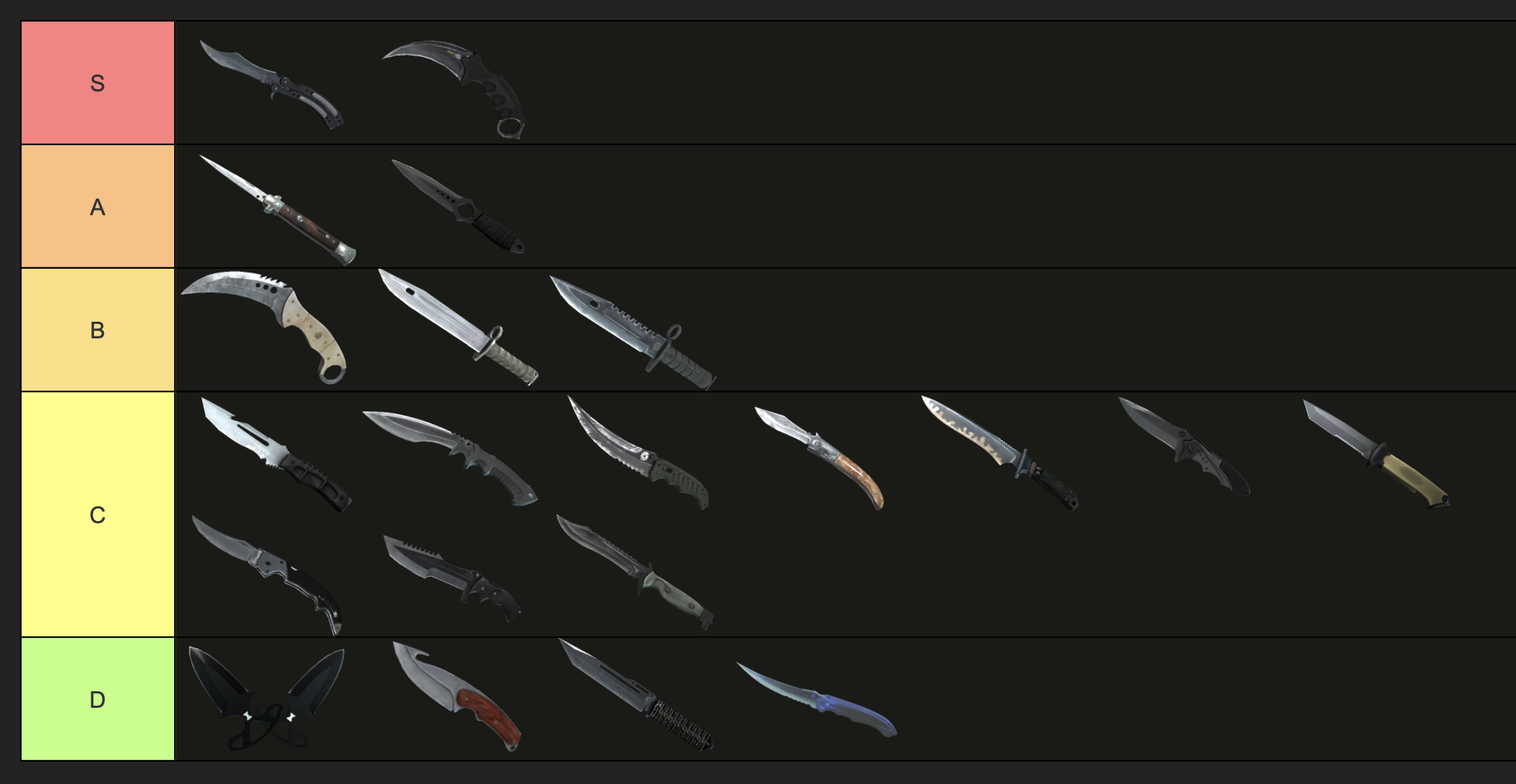 Почему считается что керамбит выше тиром чем коготь, хотя кера реально скучный. Вы зайдите на любой сервер с ножами, покрутить керу, побегайте с ним, а потом с когтем. Ну говно же скучное этот керамбит, он топорный такой, прямолинейный, без выебонов, он просто не стоит своих денег, разве что цена на него и хайп потому что люди хавают только чужое мнение, а своего у них нет нихуя.