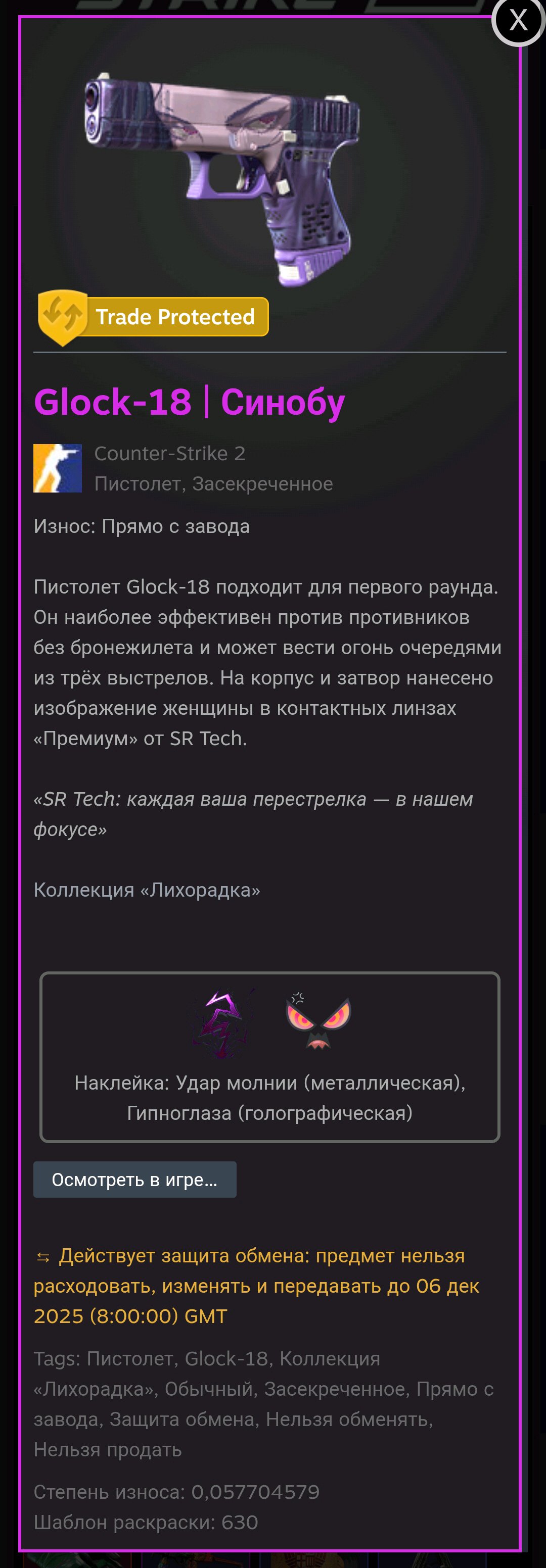 Восполняю потери при продаже скинов для покупки нового олигарха, взял заместо проданного глока реактор. Дешевле, да, но зато красивое и с наклейками ещё, удачная покупка я считаю. Осталось фамас купить.