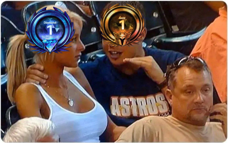 Но топы понимают, что они могут совершенствоваться в своих играх, а типы с низов не допускают такую мысль, потому что у них доминанта мышления это "бомжи тиммейты" и они львиную долю своего когнитивного ресурса во время игры тратят на режим "бабка у подъезда", перемывая косточки своим тиммейтам, вместо направления своего внимания на свою игру.