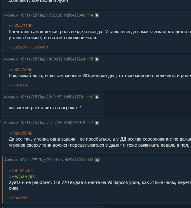 >>50425046 Да все так, у танка одна задача - не проебаться, а у ДД всегда соревнование по дамагу. Конечно, где-то там в 10% лучших игроков сверху танк должен переделываться в дамаг и тоже выжимать педаль в пол, но это явно не про нас.