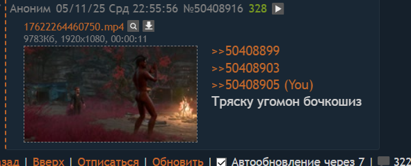 >>50408131 >китайской Палишься, семен. К слову о том, что калотарку не любят итт - бОльшую часть постов, собирающих юшки и на которые агрятся, вот это чучело пишет. >>50408125 >Наслаждайся Боченьками меда я уже насладился, спасибо. А зачем ты своего протыка - пидорка притащил? У натуралов такой катсцены в игре нет и для этого даже не нужно убивать хуилла, нужно просто не быть пидором.
