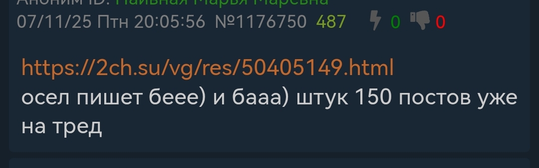 шитпостинг в тухлом треде основной признак здохшего сабжа. поекал настолько деградировал паверкрипом и прочей залупой что даже даунам итт нечего обсудить они просто мычат теперь