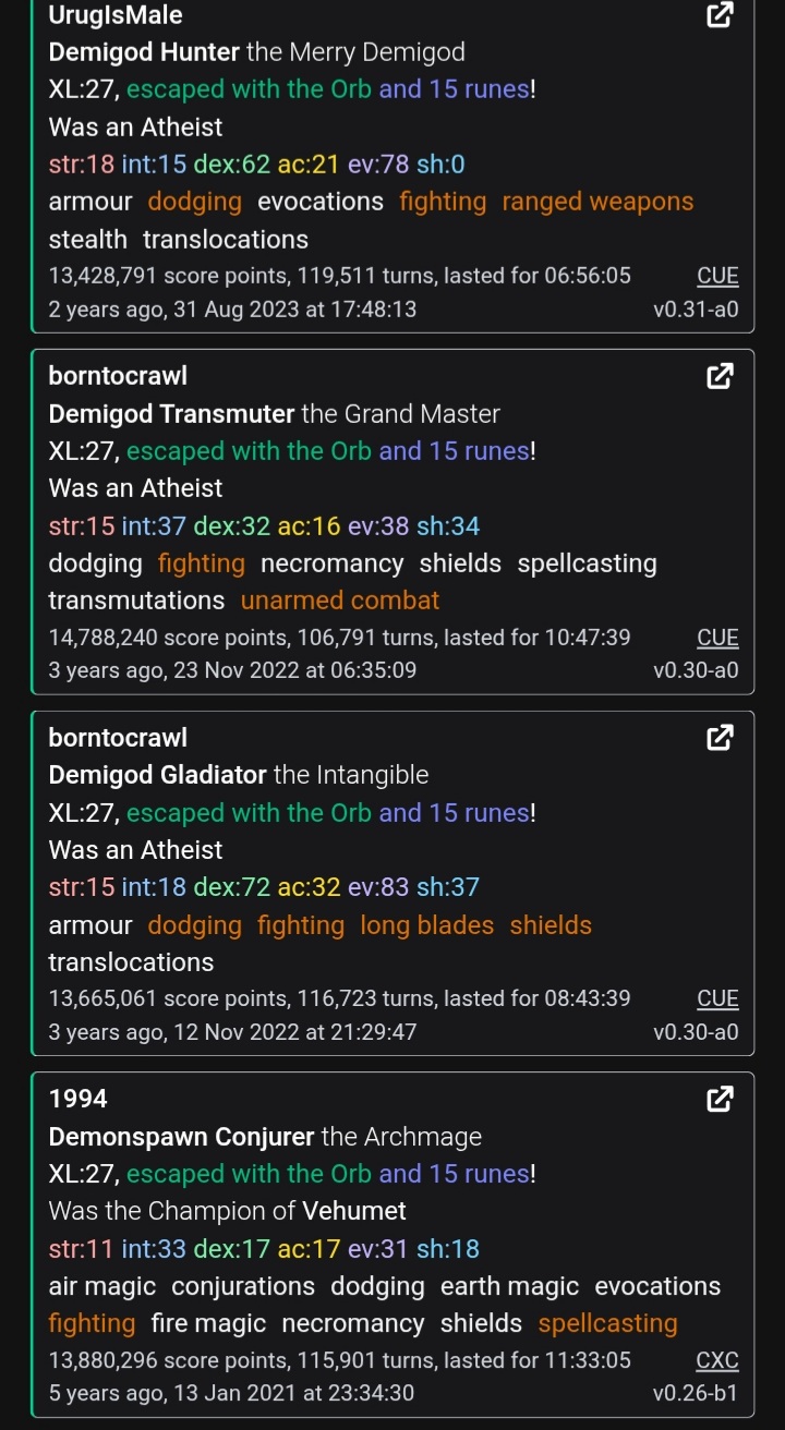 >>50452407 Все мои 15-рунки. Ели вспомнил, а вернее нашел по фильтрам, последние никнеймы (на первом специально сменил пароль на спам с закрытыми глазами чтобы проебать акк и не играть больше в эту парашу, но потом еще немного возвращался чисто подурачиться на апнутом демигоде). Алсо >6 years ago,15 Jul 2019 как же, блять, это было давно, а я помню как в той катке абьюзил ангельский лвл пандемониума, макся на всякий случай скиллы, чтоб в первой 15-рунке точно не обосраться, будто это было позавчера.