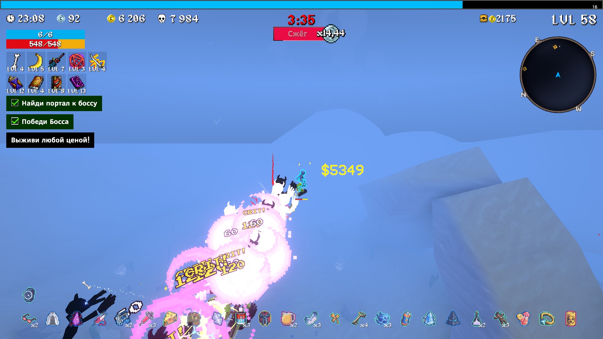 Прошел три уровня опасности в Бротате, больше не тянет. 20 волн это пизда как заунывно, 15 за глаза бы было. Как в это надрачивать сотни часов? Я понимаю если б был солидный мобильный порт, я бы доставал телебон в метро лениво катнуть забег. Но на ведре бротата расхуярена в борщ рекламой, бустерами, микротранзакциями и тд, невероятно жадная тварь на разрабе. Потом я опробовал god of weapons, видел как протык ставит его в s tier вампиролайков. Там вообще пиздец, кривой ассетный говняк на юнити, такое кодят в завершении курсов от skillbox, альт ф4 на третьей минуте.
