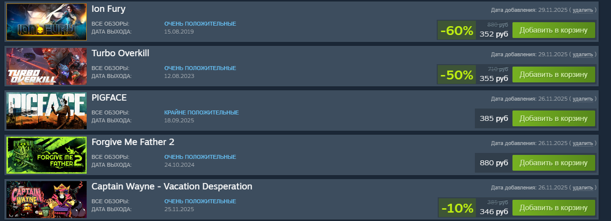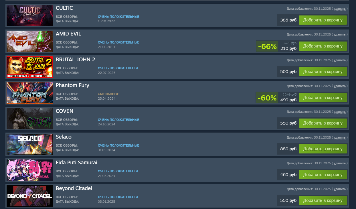 >>50576021 Список желаемого со 100+ тайтлами. На игры, которые хочу купить скидки мизернейшие. Остальное говно не интересует и висит только, чтобы чекать обновы, если они будут. Без нормальных обнов брать это "На будущее становление конфеткой" точно не хочется. Уже сколько раз так лоханулся и говна понапокупал.
