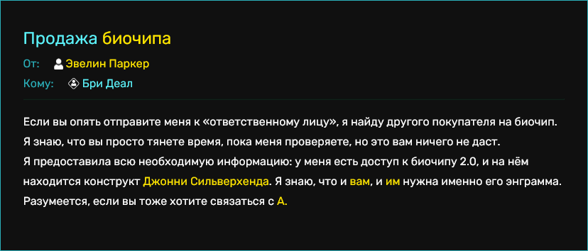 На самом деле концовка Башня норм, но только если играешь за тян. Ну типа тянке боевые импланты не нужны, Ви просто выйдет замуж за любимого человека и будет жить себе припеваючи.