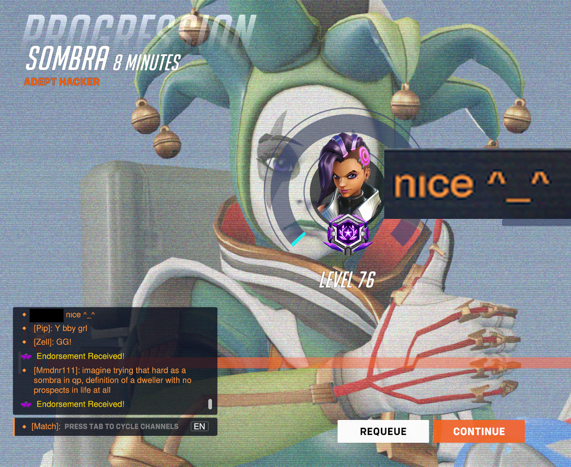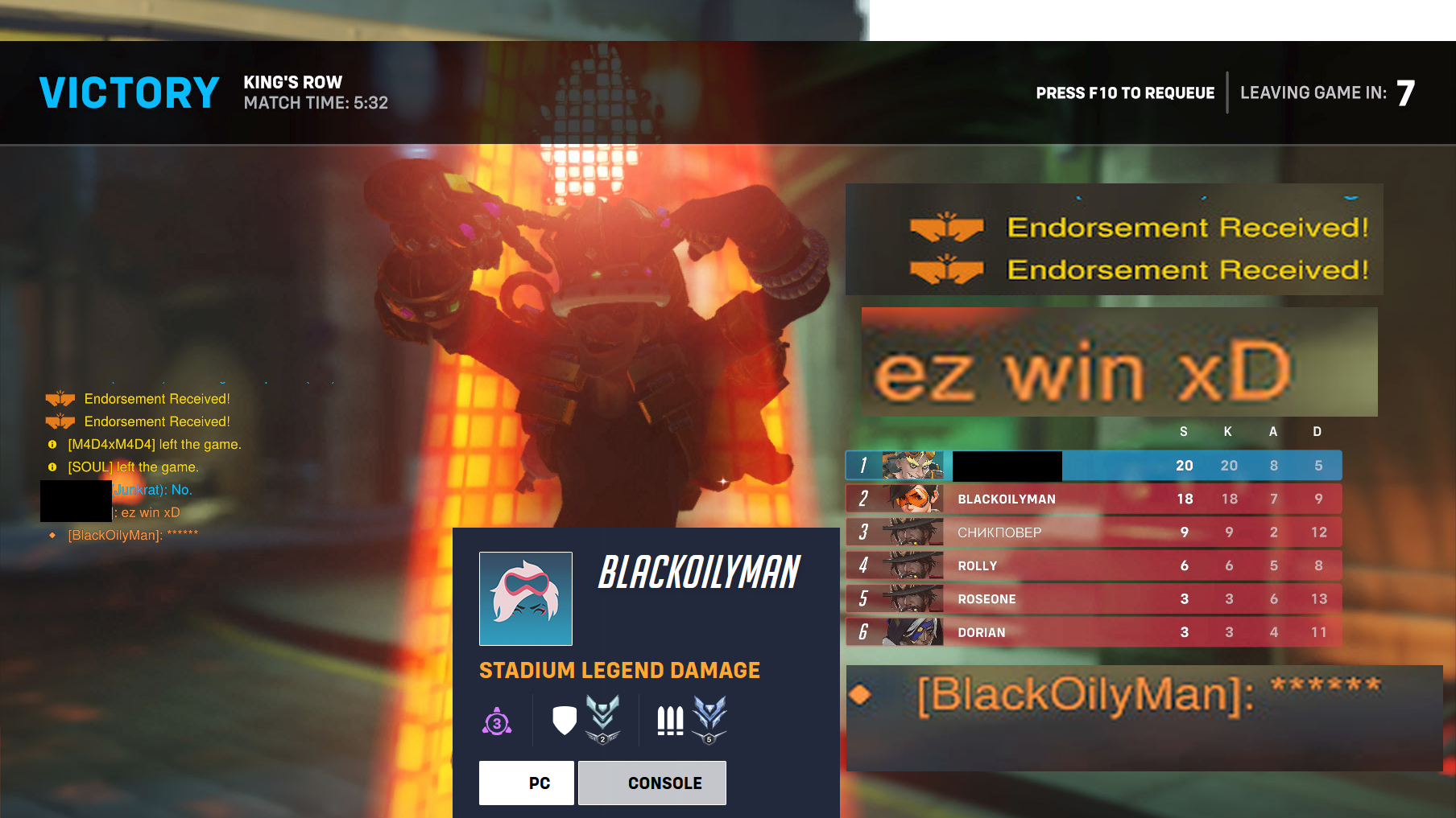 Я не репорчу за нестандартные пики, если ты полезен. Саппорты, которые были втором и третьем слоте (я мерсимейн) получают "гуд тиммейт" эндорс. Танки, которые хорошо прикрывали меня или перевернули ключевой файт, получают "шот коллер" эндорс. Дебилоиды на ДПС не получают эндорс никогда. Если ты был сильным игроком в противоположной команде, но тиммейты тебе заруинили, и при этом у меня есть лишний эндорс, то я даю тебе "спортсменшип". Если мы проиграли, то эндорс не получает никто!