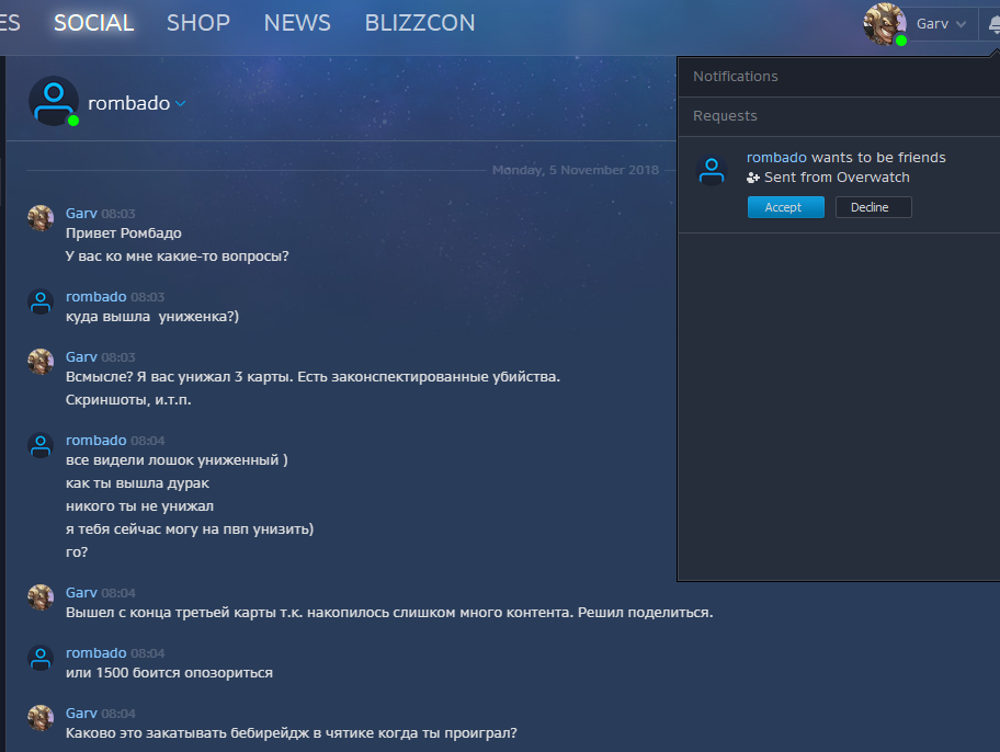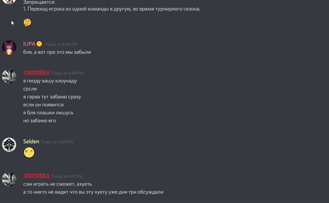 — если ты вежливо просишь меня свичнуть героя, то получаешь блок + репорт, если невежливо, то ещё и эвейд в придачу; — если ты просишь меня присоединиться к войсу, то получаешь блок + репорт; — если ты написал гг в конце матча, то получаешь блок + репорт; — если ты в принципе написало что-то, что мне не понравилось, то получаешь блок + репорт, думай дважды, чепуха; — если мне не нравится, как ты играешь, то получаешь репорт + эвейд; — если ты в моей команде и у тебя уровень <100, и ты не смурф (т.е. имеешь кд <4 в стате или не убиваешь пол команды врага в замесе), то получаешь репорт + эвейд; — если ты решило выгулять своего дружочка-лоускила в пати, то оба получаете репорты, а чмоха с самым высоким эло получает эвейд; Хочу заметить, что репорты складываются, то есть если ты плохо играешь и бухтишь в чат, то получишь два разных репорта, а так же получишь ещё копию этих репортов, если попадёшься со мной в следующей игре, даже если окажешься в противоположной команде.