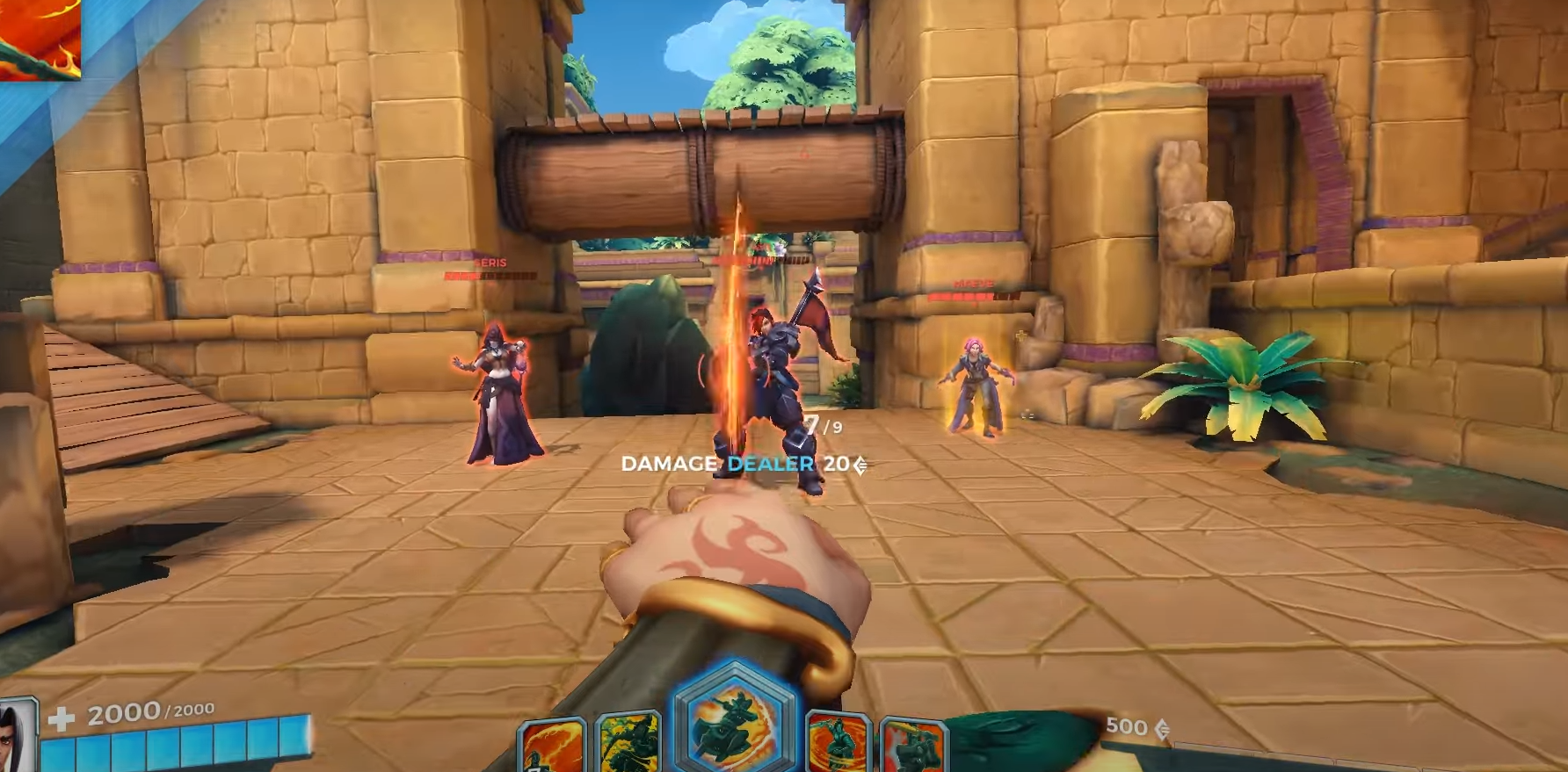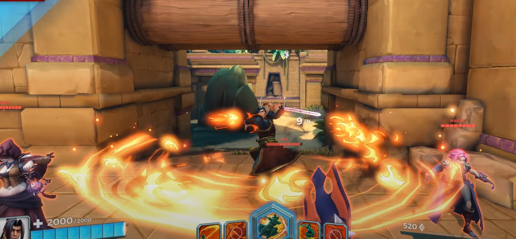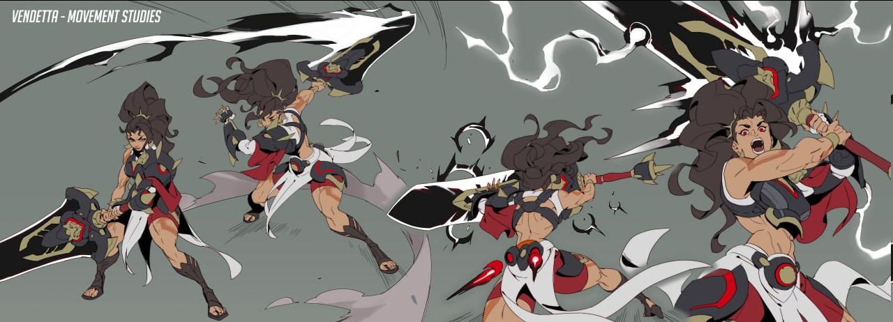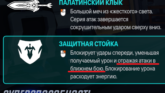 🔘Оружие «Клык» — двуручный меч из жёсткого света. После комбинации взмахов наносит урон по доп. здоровью. 🔘«Защитная стойка» — Вендетта совершает блок мечом, уменьшая получаемый фронтальный урон и отражая атаки ближнего боя. Поглощение урона расходует энергию. 🔘«Летящий удар» — бросает меч в направлении взгляда, а затем подлетает к нему. 🔘«Вихрь» — совершает рывок вперёд, нанося круговой удар мечом. 🔘«Рассекающая проекция» — доступна пока активна «Защитная стойка». Поглощает энергию и запускает широкий снаряд. ⏺️«Раскалывающий клинок» (суперспособность) — пробивает большинство видов защиты. Наносит огромный урон врагам перед собой. 🔘«Штурм» (пассивный навык) — наносите урон врагам, чтобы увеличить свою скорость атаки и передвижения.