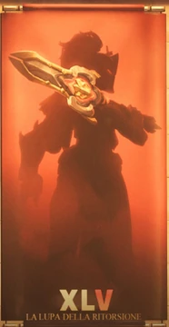 Таким образом ясно что это не ее имя а то как ее называют - Волчица. Судя по остатку слов наверняка "волчица чего-то там". Затем переводим остальное - Реторсионе, и получаем "Волчица Возмездия". Ну или тупо просто "ВЕНДЕТТА" (месть, возмездие)