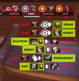 >1-2-3-4 место в рейтинге Десматча господи как же круто всегда занимать 1 или 2 место. В десматче только Маккри часто удается меня обойти. Вообще Маккри самый бесячий персонаж т.к. он единственный кто за 1 шот может воровать килы у всех остальных из далека, и оставаться опасным противником в мид дистанции