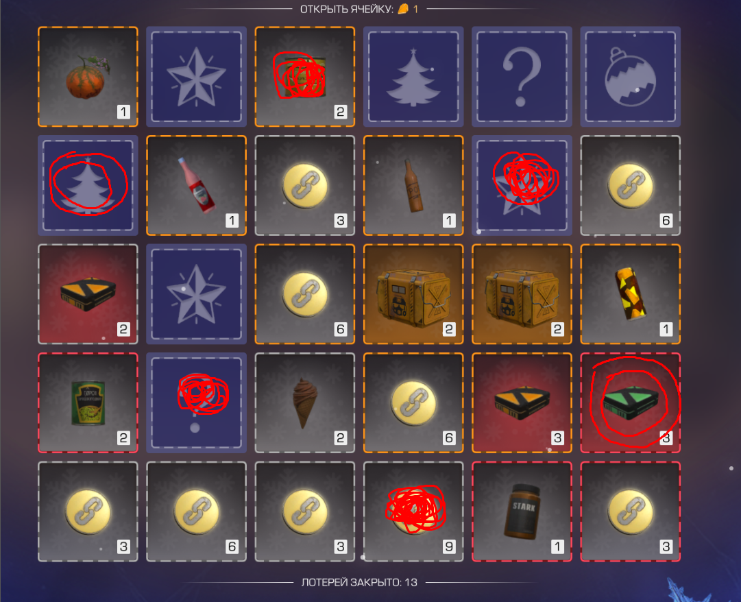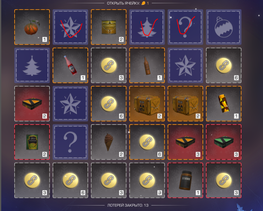 >>50646823 Как ты вообще 13 лотерей до этого закрыл? Алсо, посоны, не крутите турбовика, можно попасть в неприятный расклад, что откроешь только за 160-170 огоньков. Лучше обычный снеговик, в среднем 12-13 тычек с редкими неудачными 16-17.