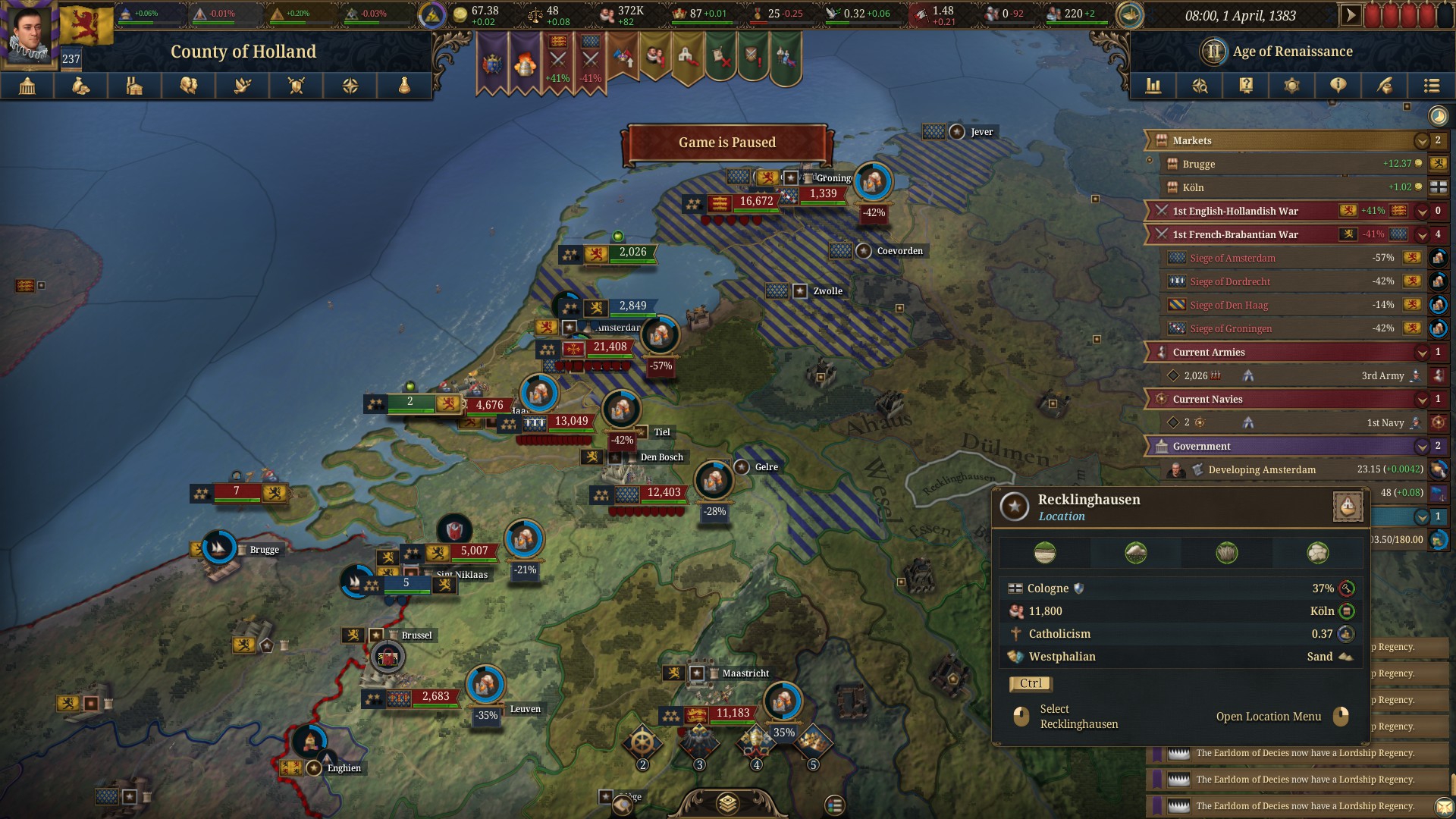 >>50419749 Ну так Голландию надо ж собирать было. В первые годы вообще отлично воюется. С сержантерии можно четыре роты тяжёлой кавы иметь, и все ополчения пейзан жалких отлетают мгновенно. Я и Фрашке нормально пизды давал, тысяч 15 сжёг своими тремя на перемещениях. Но когда там под 80к в 14 веке приходит и от англичашек 20к, то уже не хуй делать. Но мы не отчаиваемся. Сейчас произойдёт засос Утрехта, потом засос тех кто в унии остался, а дальше будет постановка Восьмидесятилетней войны со сменой испанского говнососа на французского петуха.