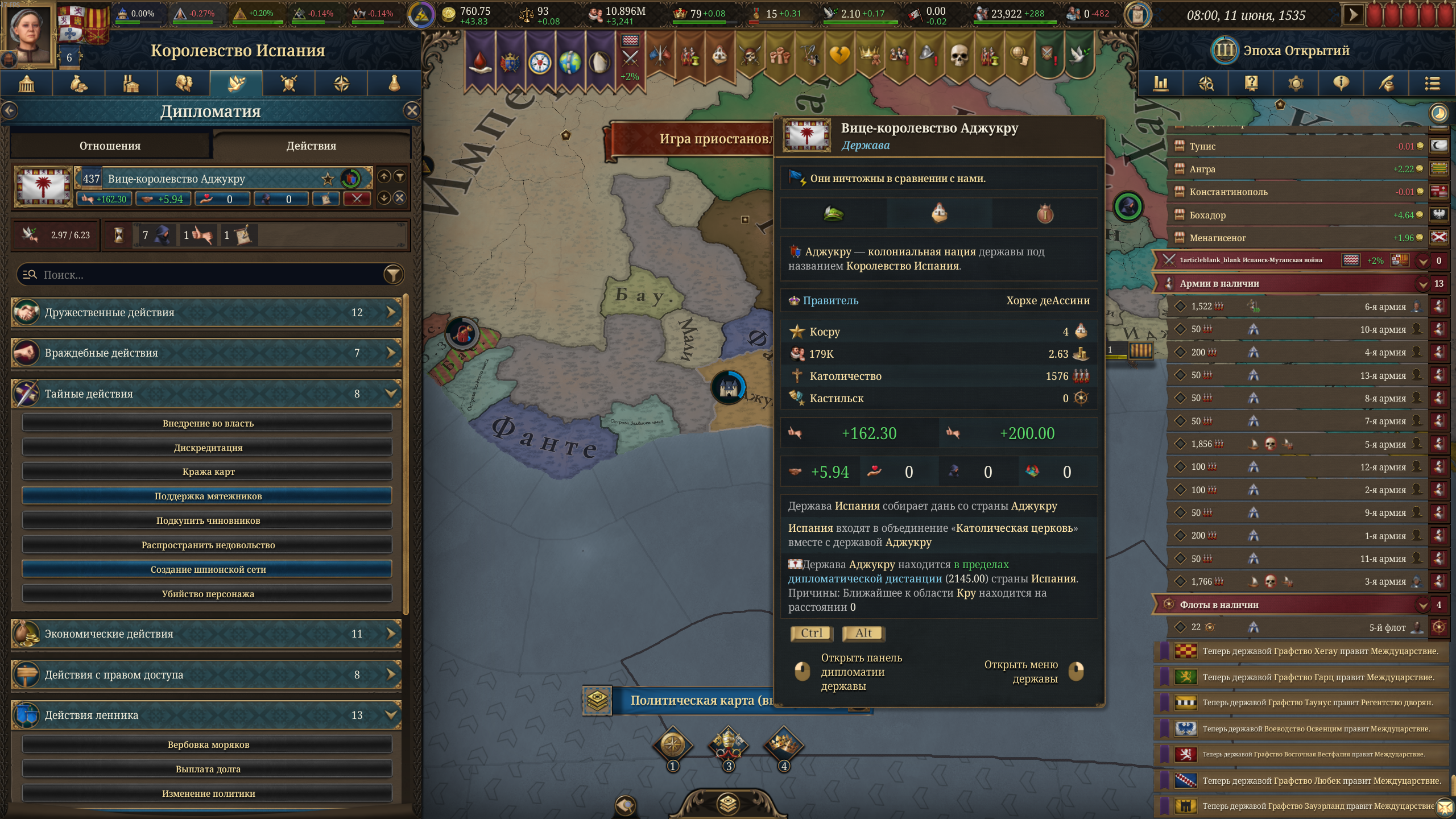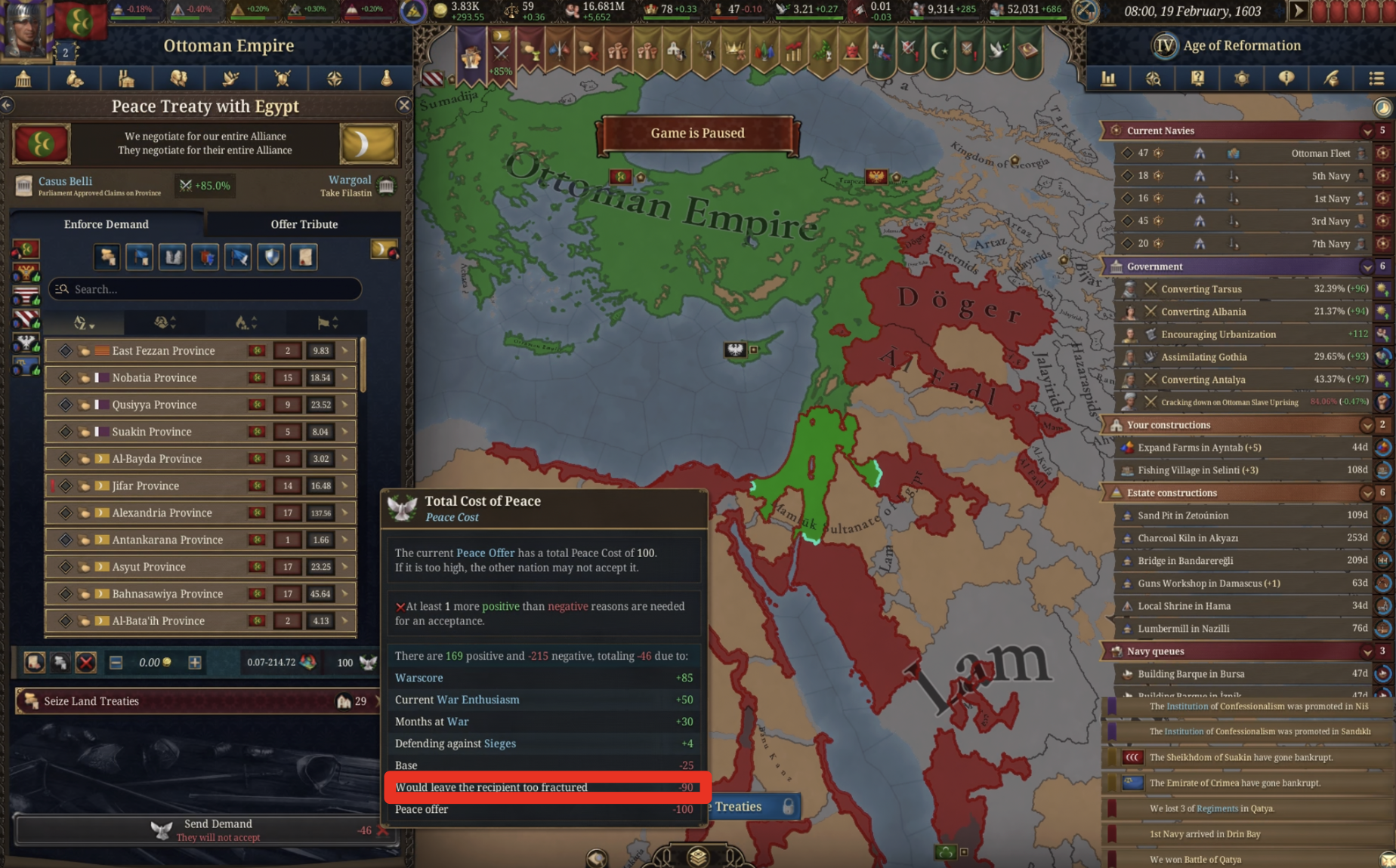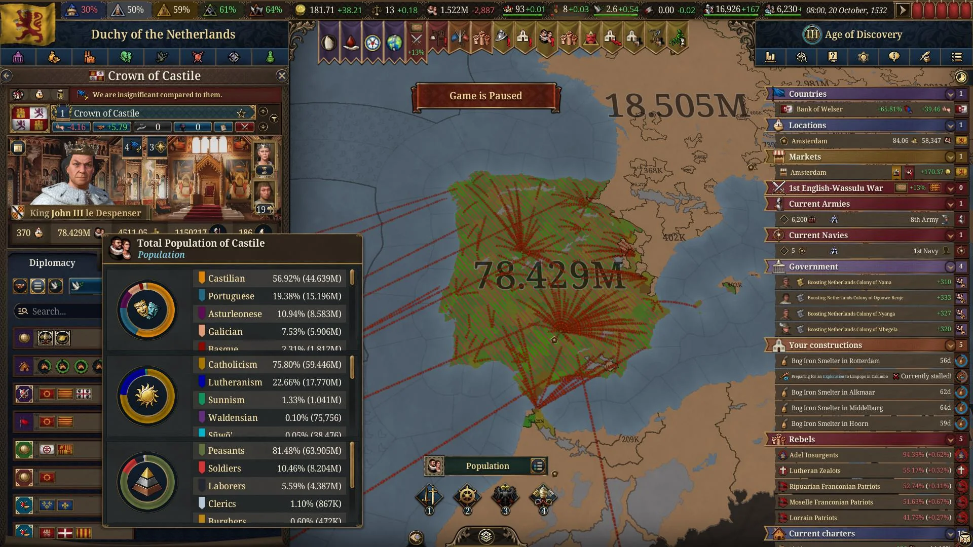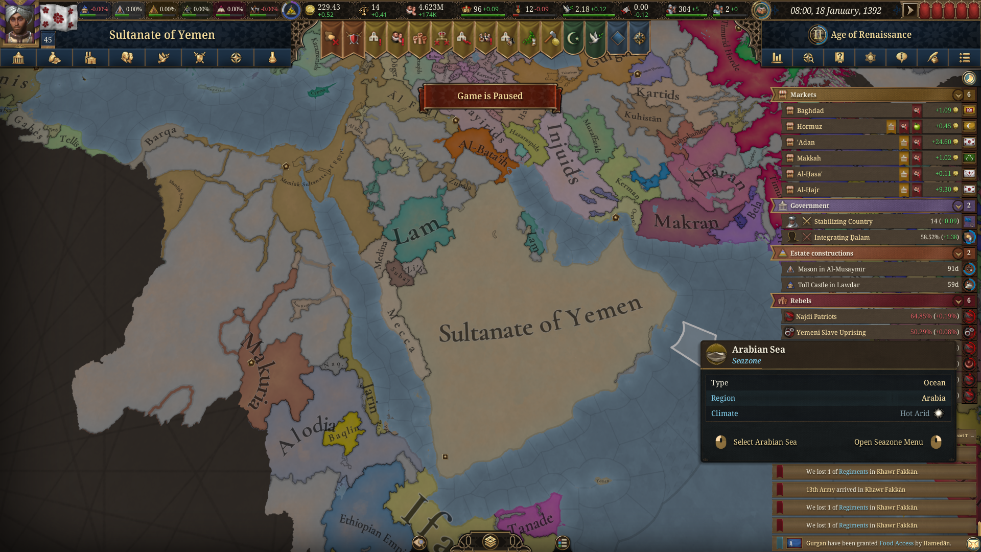 Планы на будущее, национализировать ебаннную Геную, потому что там повстанцы прям ебут, у них дебаф -50% Conqured, полагаю, за то, что я еще не национализировал их, приходится их давить советником чтобы они опять не брыкнули.