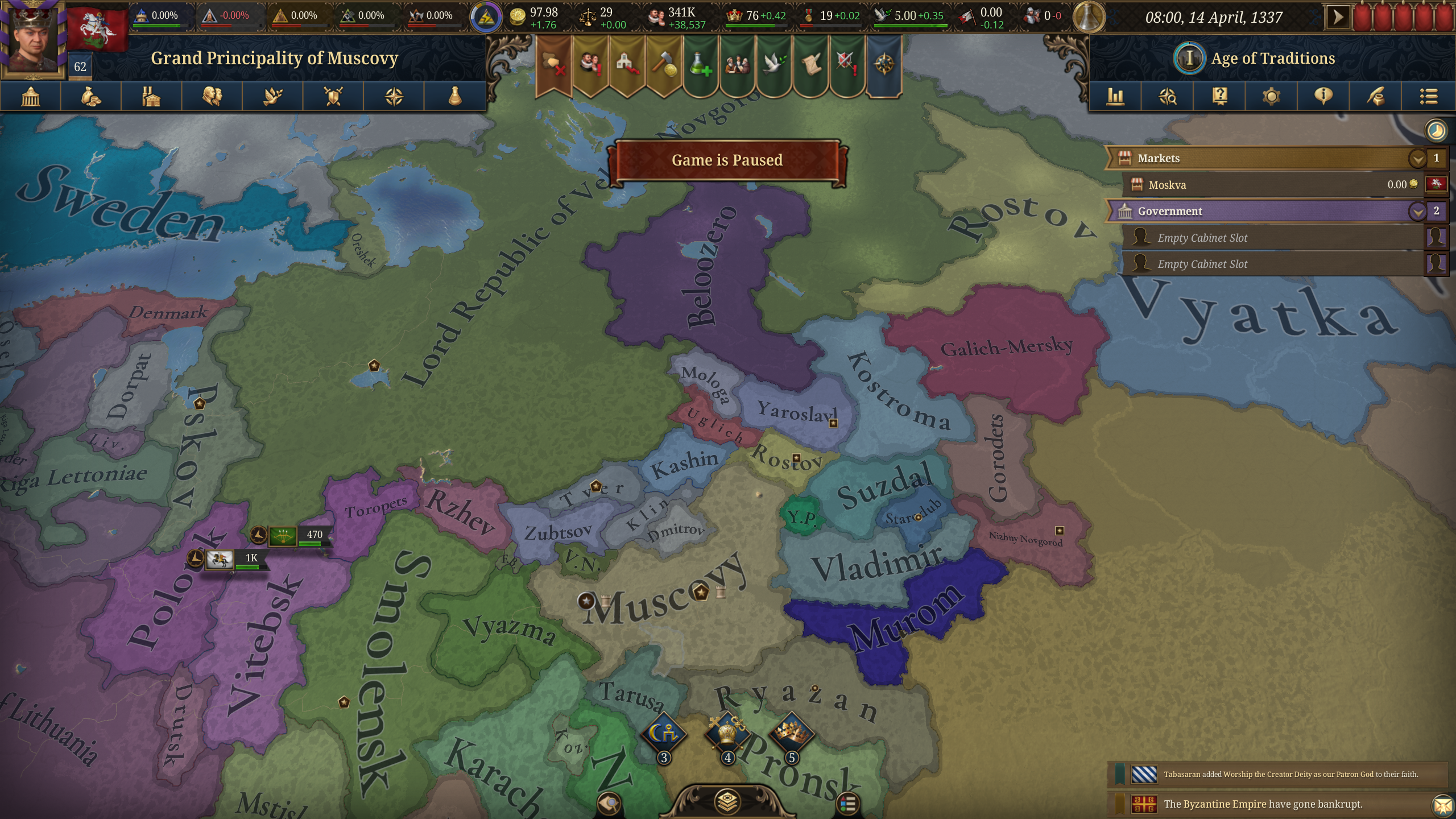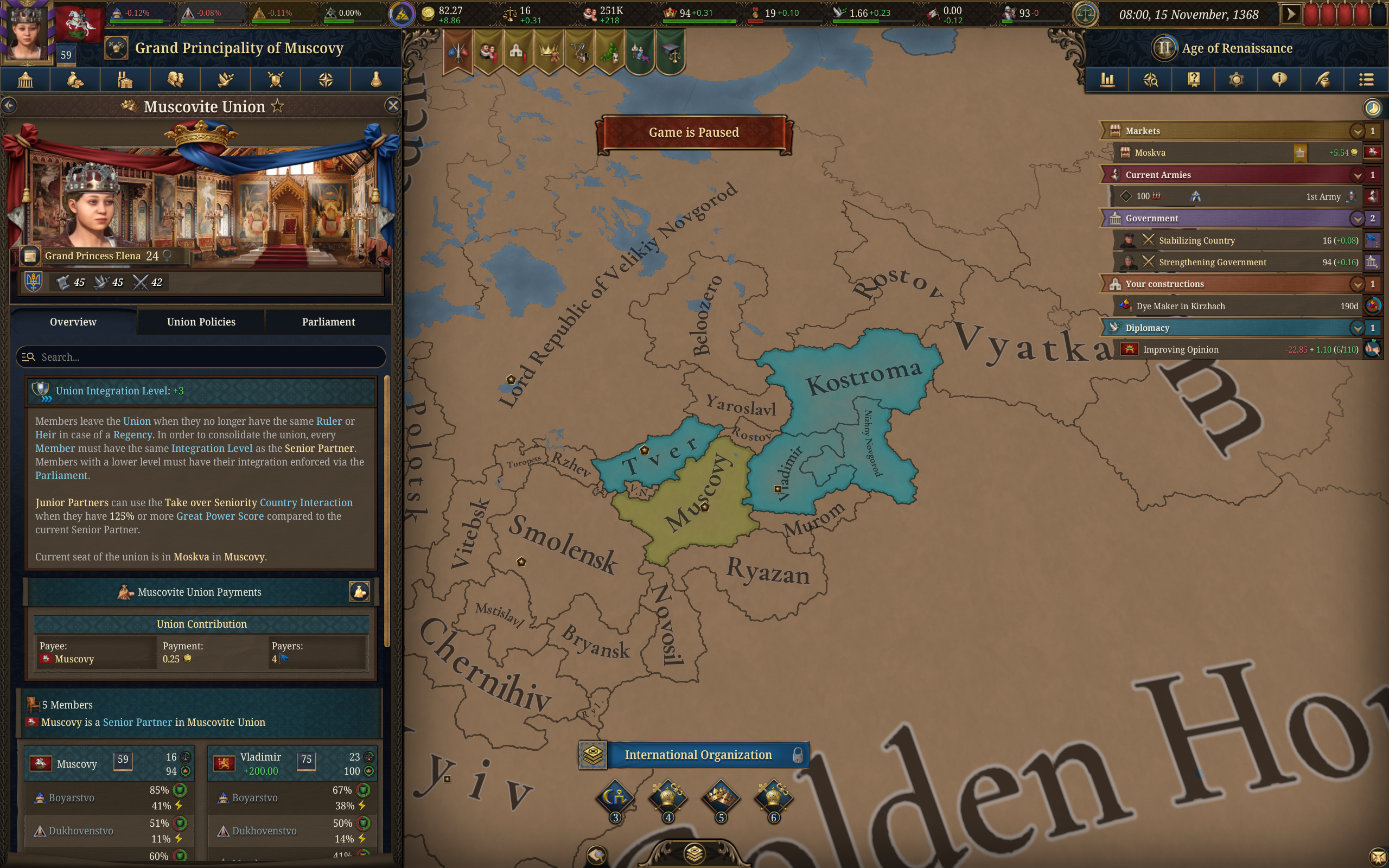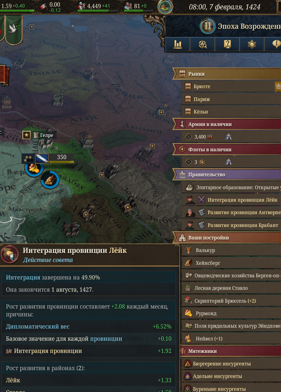 Лично мне остаются непонятным две вещи. Когда выгодно оставлять территорию с 0 контроля для себя(когда хочешь торговать руками чтобы институт с другого рынка перетекал к тебе?) С какого уровня контроля стоит начинать интегрировать вассалов чтобы было выгодно? Если после интеграции на их земле будет минимум 50, 80% контроля? 20 вассалов в наличии. Ещё не доиграл до 1500