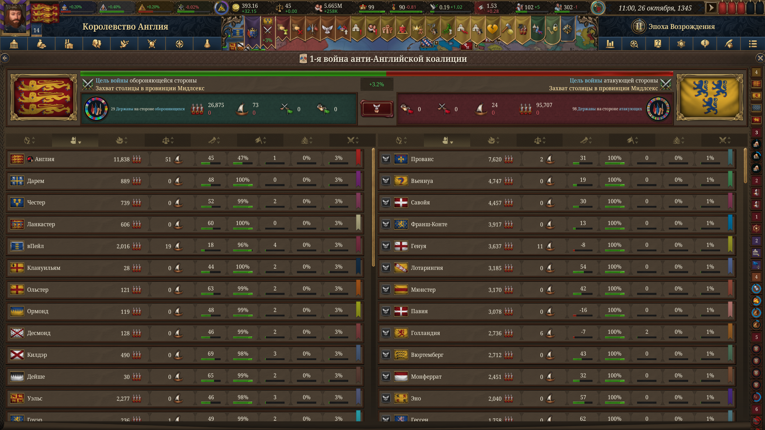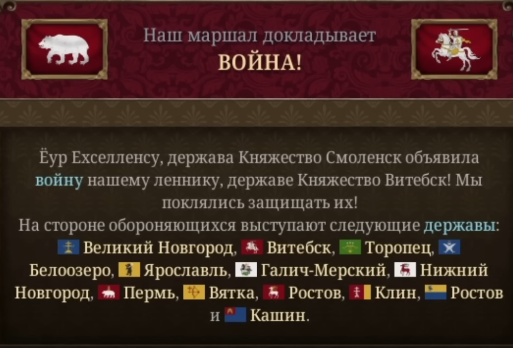Аноны, а в чем смысл мне помогать защитной стороне, если вмешиваться в войне против моего rival? Против кого войну объявляли получал земель, а мне даже денег не перепало, хотя благодаря мне мы выиграли.